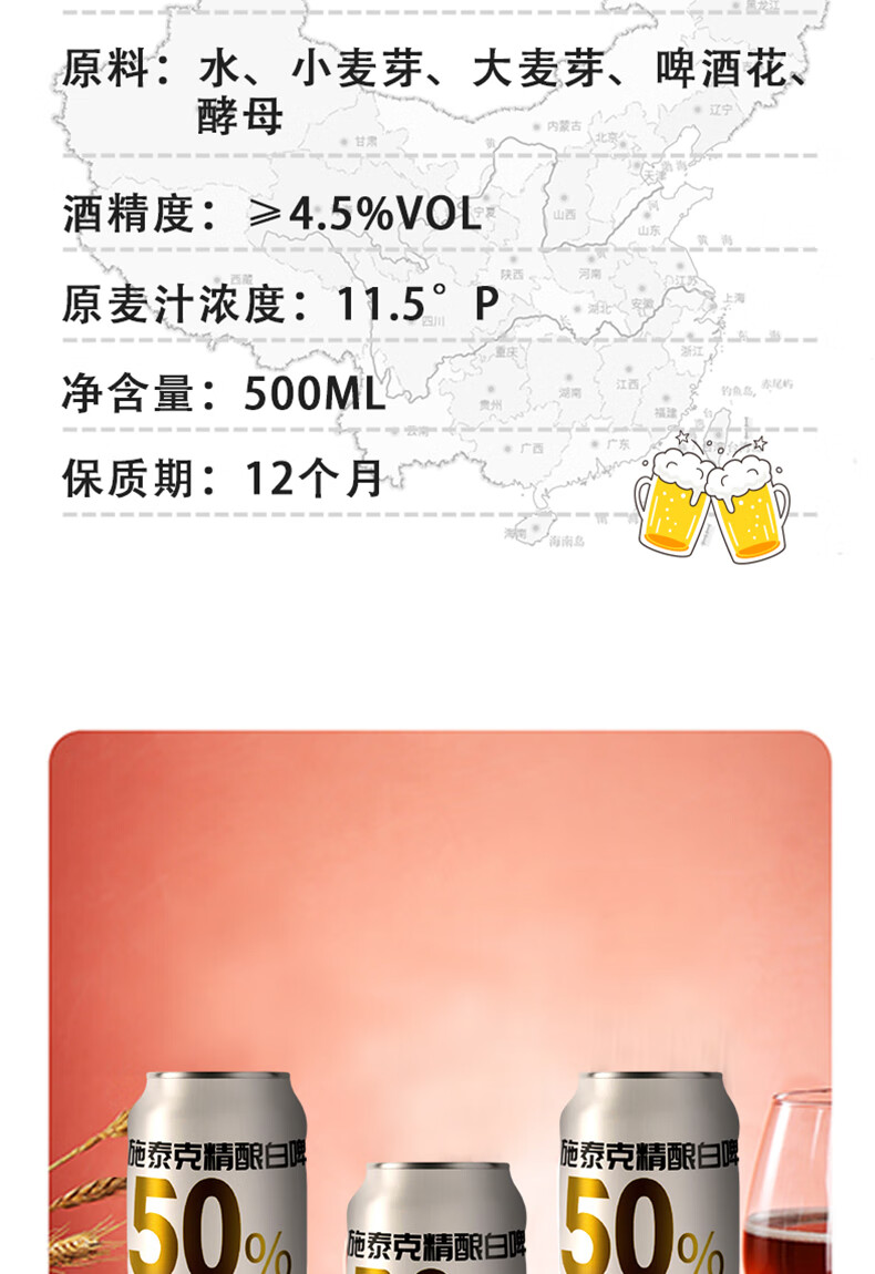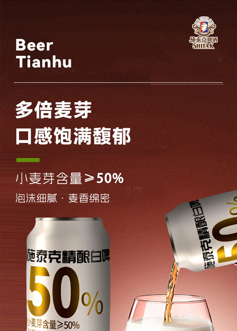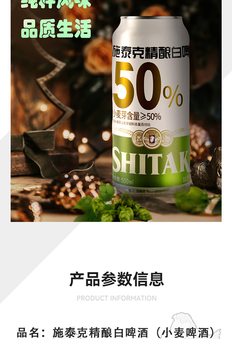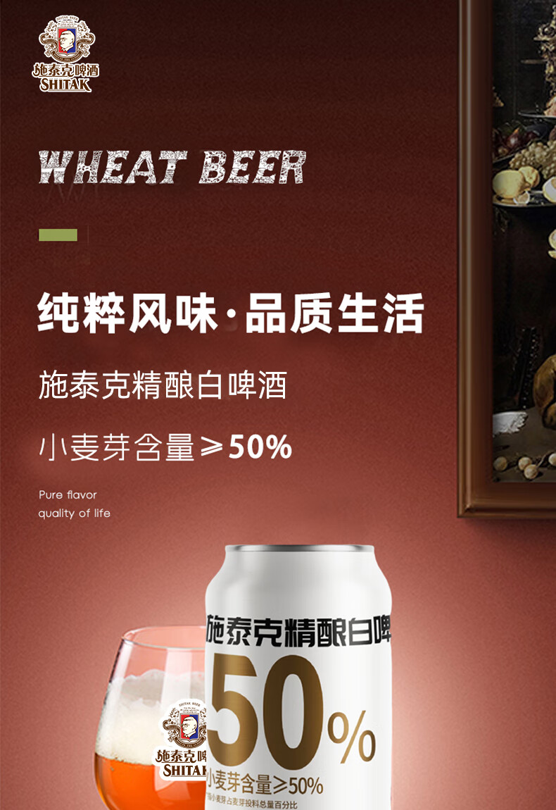 施泰克啤酒11.5度小麦白啤500ml德国精酿浑浊型啤酒口感清爽节日送礼 500ml*12罐