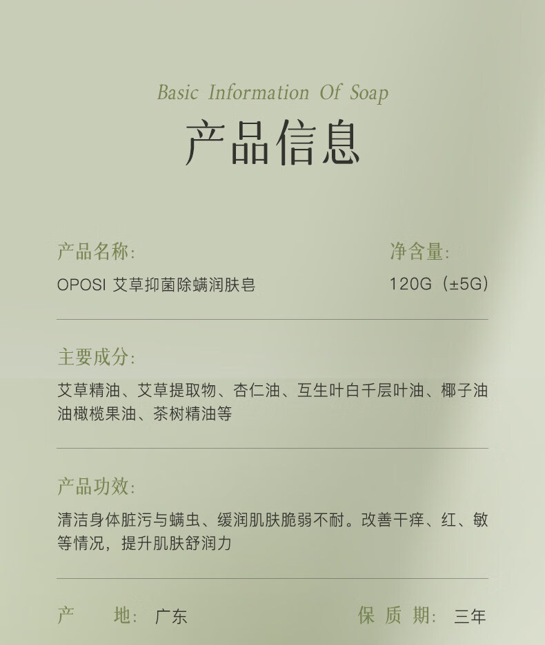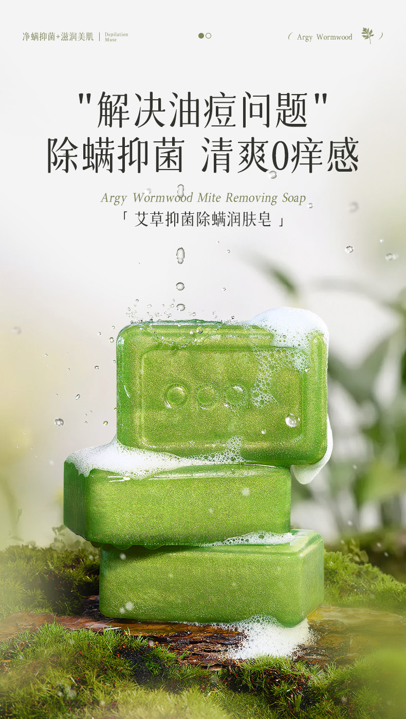 OPOSi【老牌国货】艾草止痒香皂抑菌洗脸皂沐浴皂身体清洁除螨手工肥皂 【2盒装】艾草抑菌润肤皂