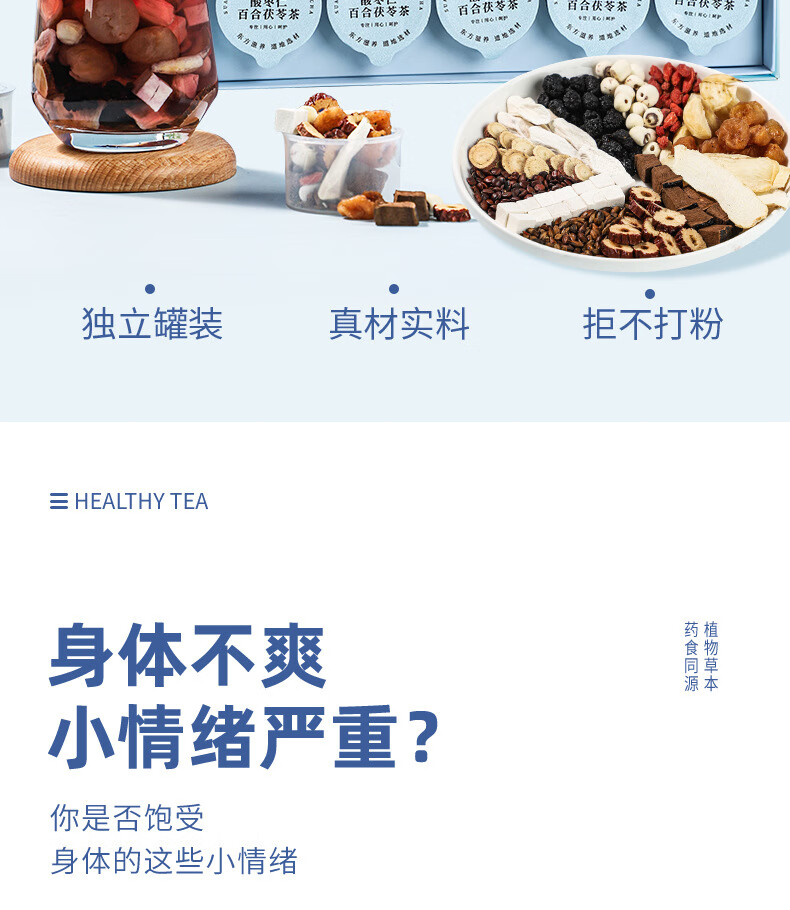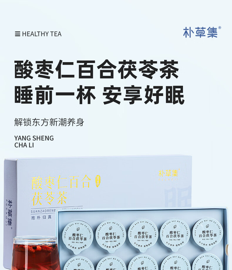 朴草集酸枣仁百合茯苓茶 独立小罐礼盒装 熬夜党安神助眠养生冲泡茶饮 170g/盒(17克*10罐) 药食同源食材 无硫无添加