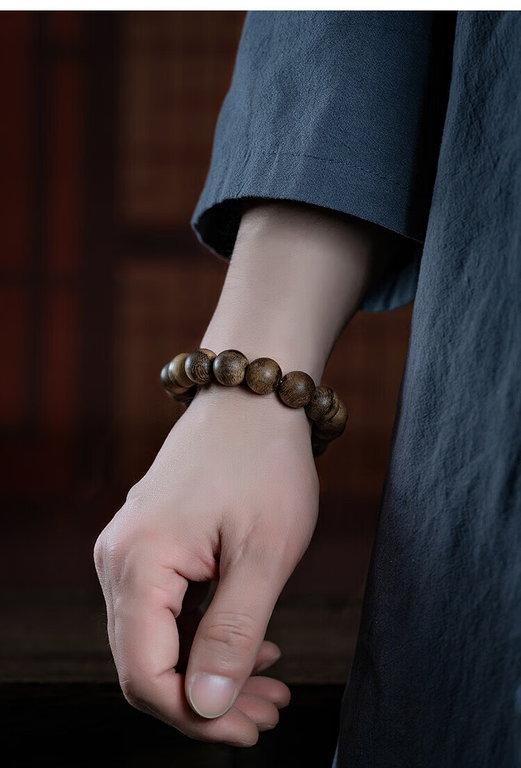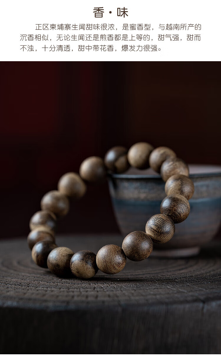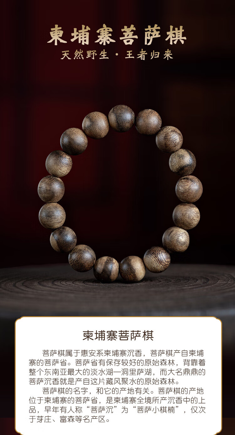 九刀匠天然真品柬埔寨菩萨棋手串沉水级奇楠沉香文玩佛珠女男士单圈手链 99分沉水 约12mm*17颗*16g