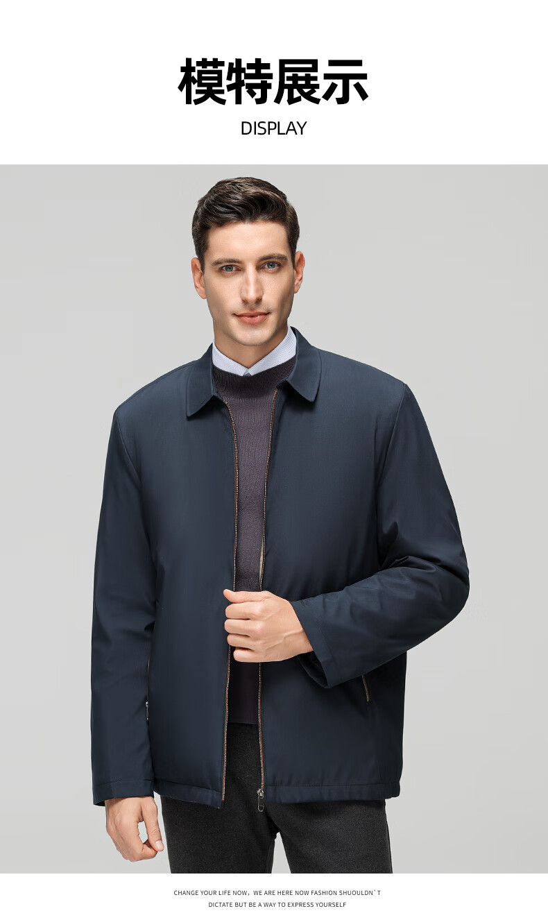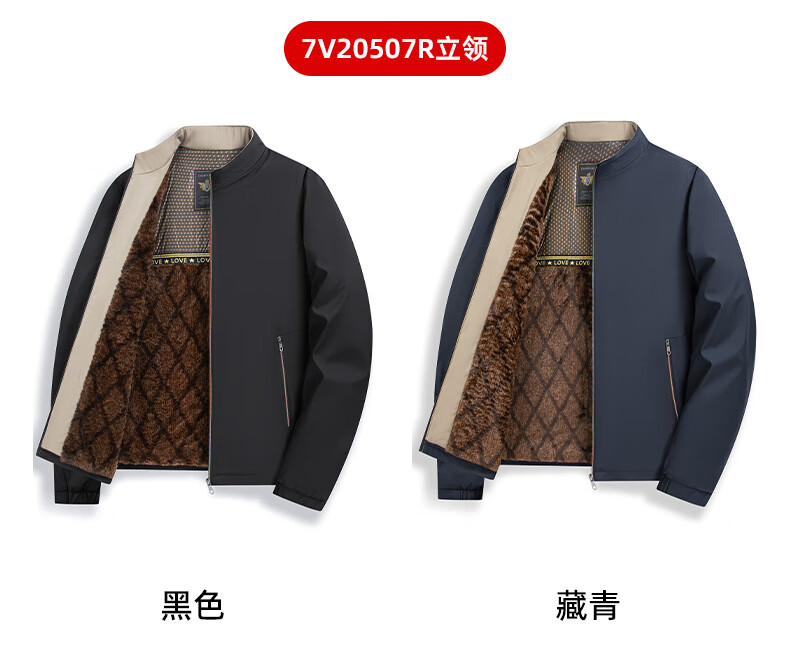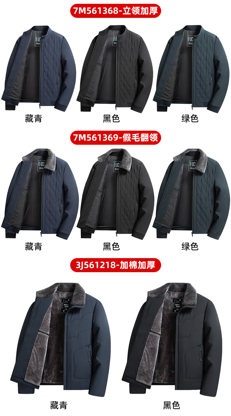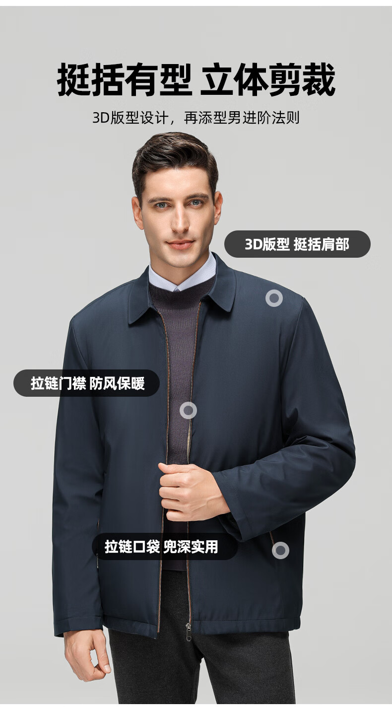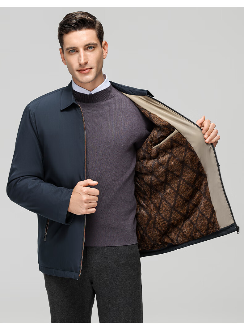 罗蒙(ROMON)加绒加厚棉服男士秋冬款中青年保暖外套棉袄夹克打底衫爸爸装 藏青 【翻领款】 XL 180 (适合120-140斤)