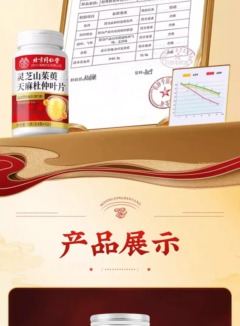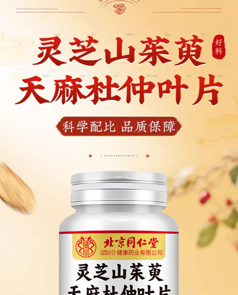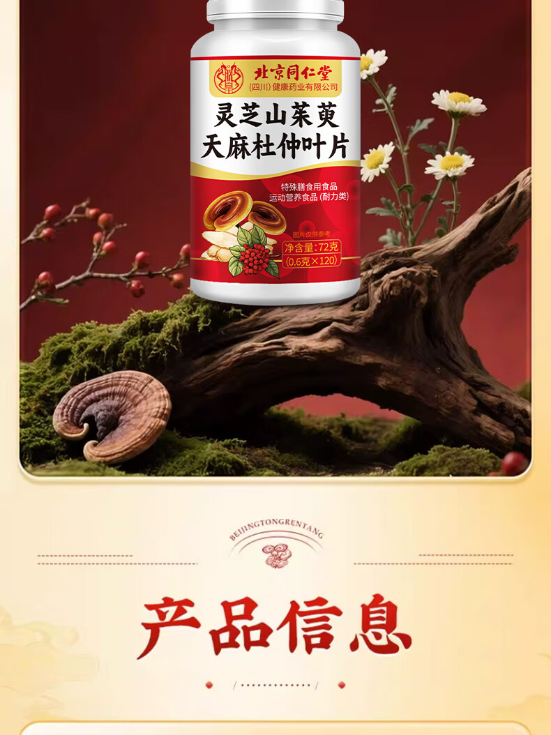 北京同仁堂【拍一发二】29.8秒杀同仁堂灵芝山茱萸天麻杜仲叶片中老年正品 2瓶240粒【补充多种营养】