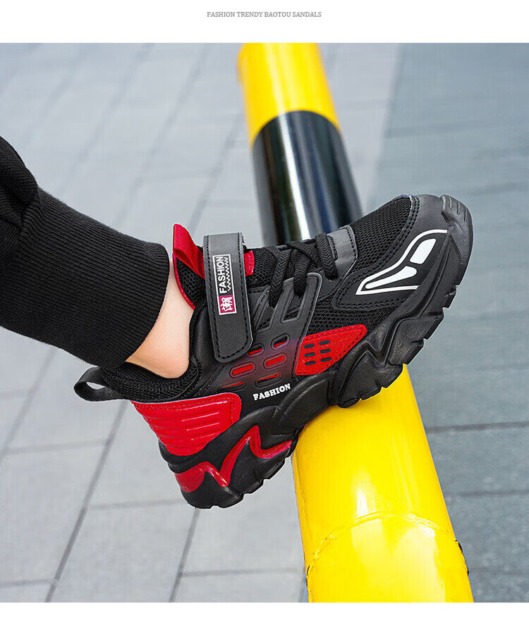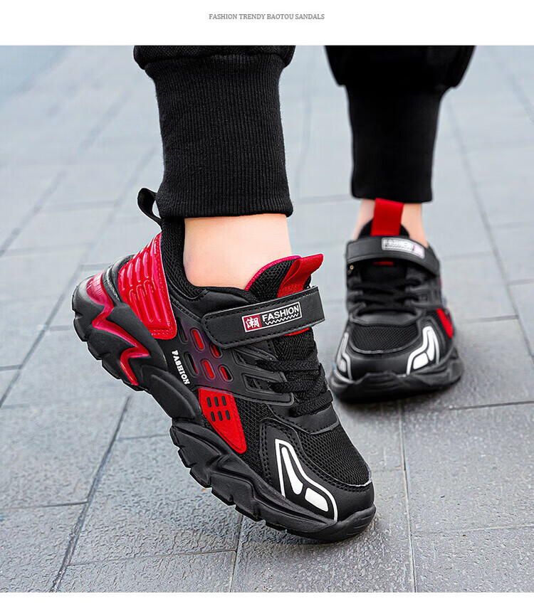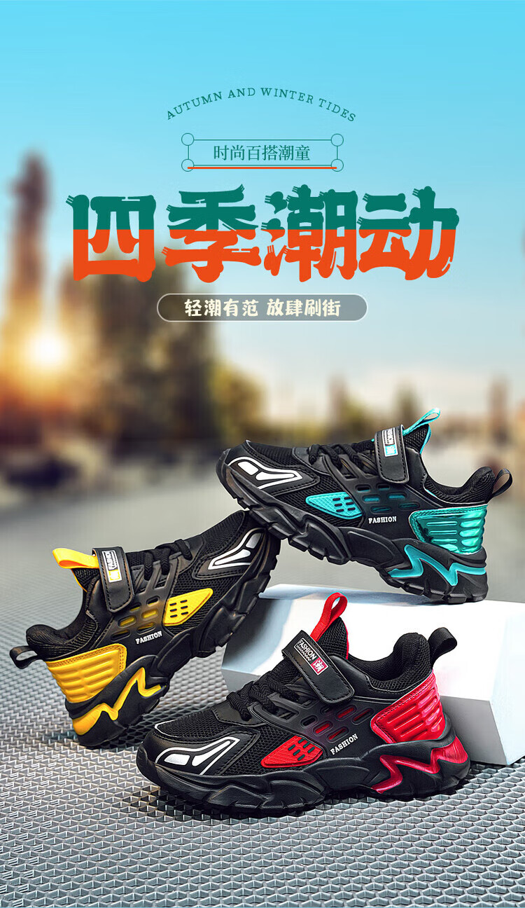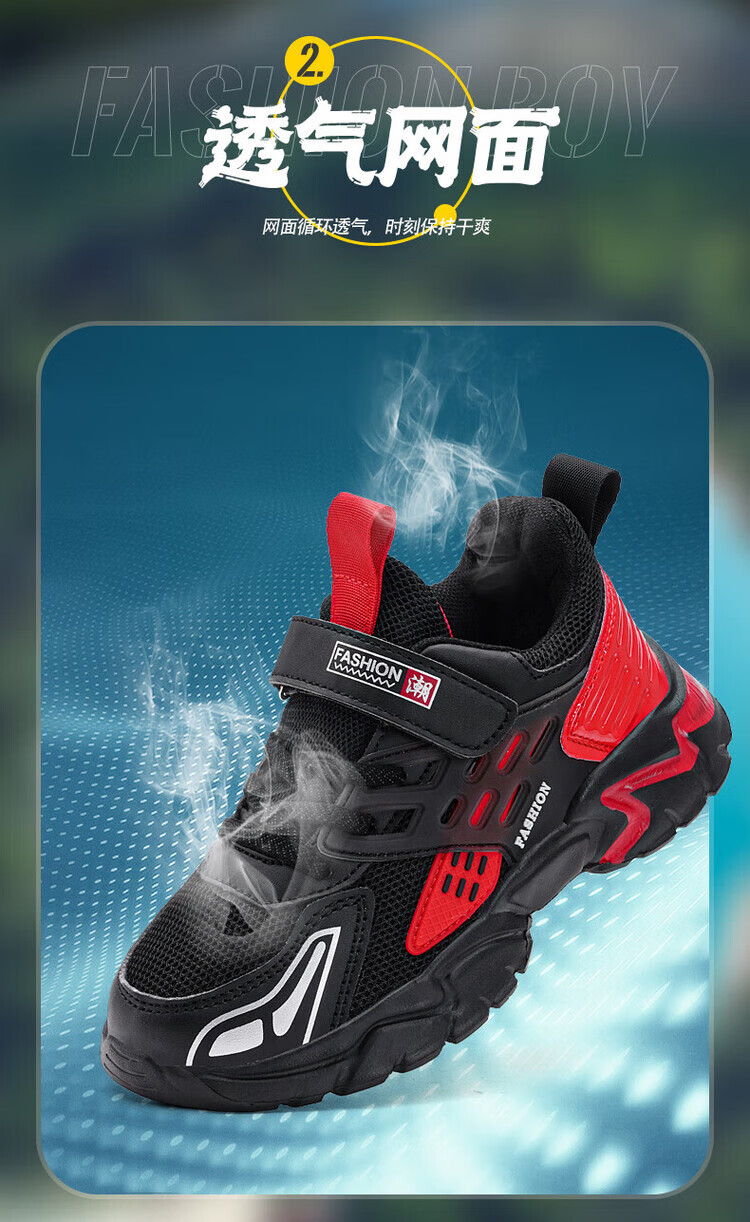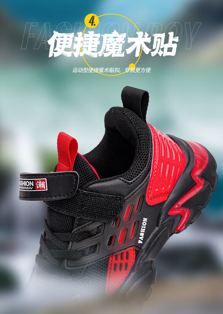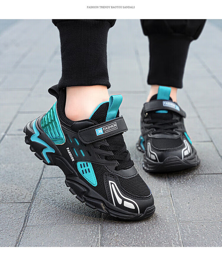 贝天熊儿童运动鞋秋冬款中大童透气网面跑步运动鞋男女童革面魔术贴童鞋 BJL2022黑黄【四季革面】 37 内长23.3/脚22.3