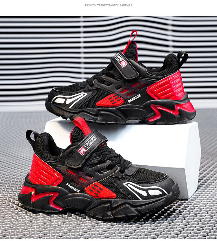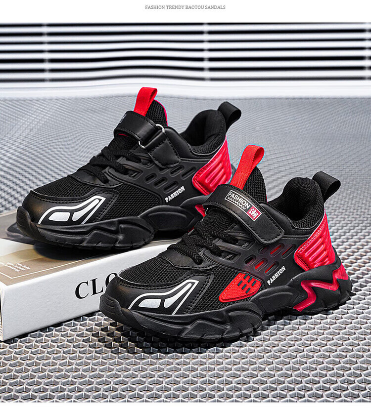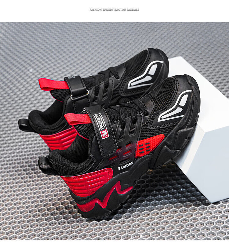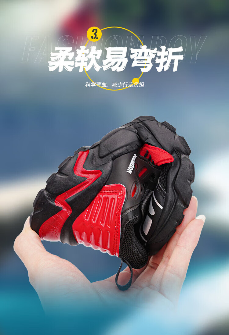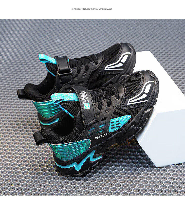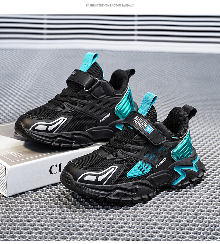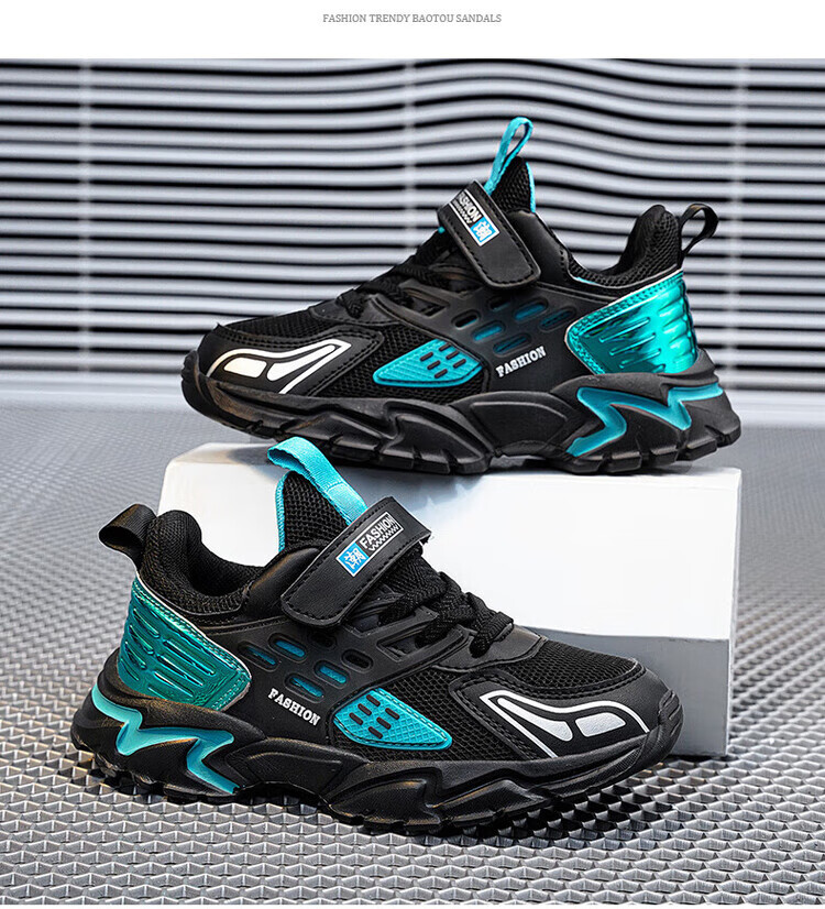 贝天熊儿童运动鞋秋冬款中大童透气网面跑步运动鞋男女童革面魔术贴童鞋 BJL2022黑黄【四季革面】 37 内长23.3/脚22.3