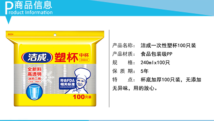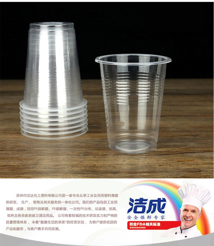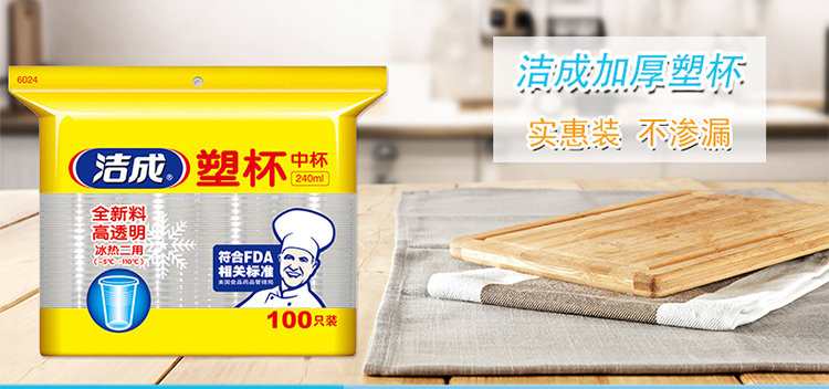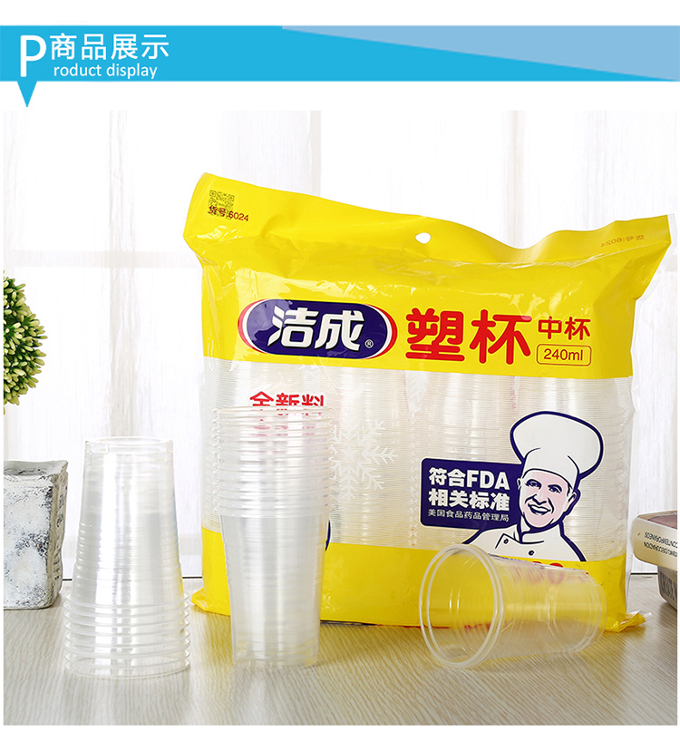 洁成一次性杯子塑料杯食品级中号加厚240ml