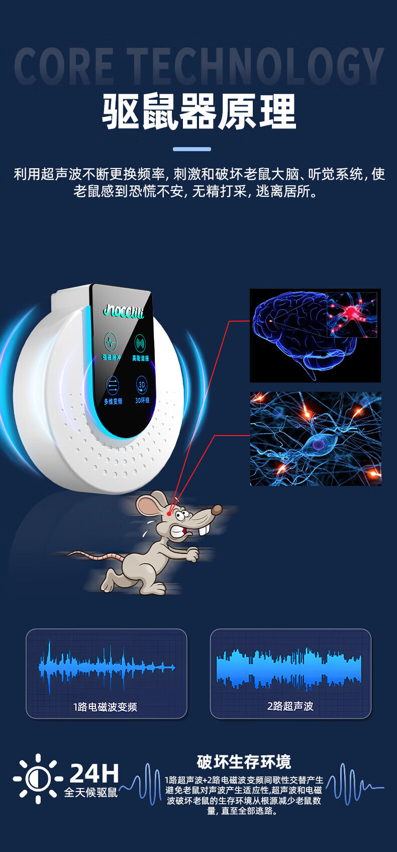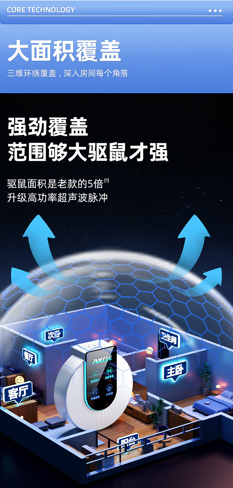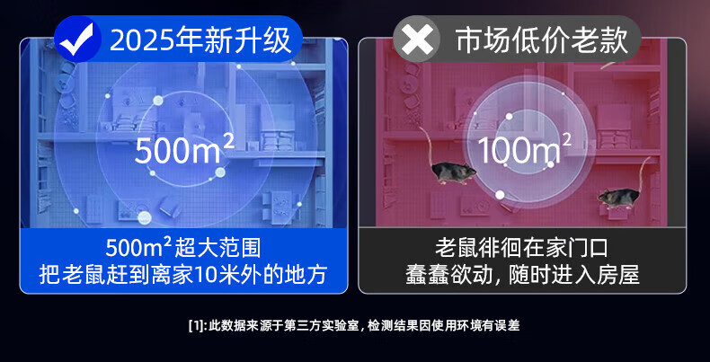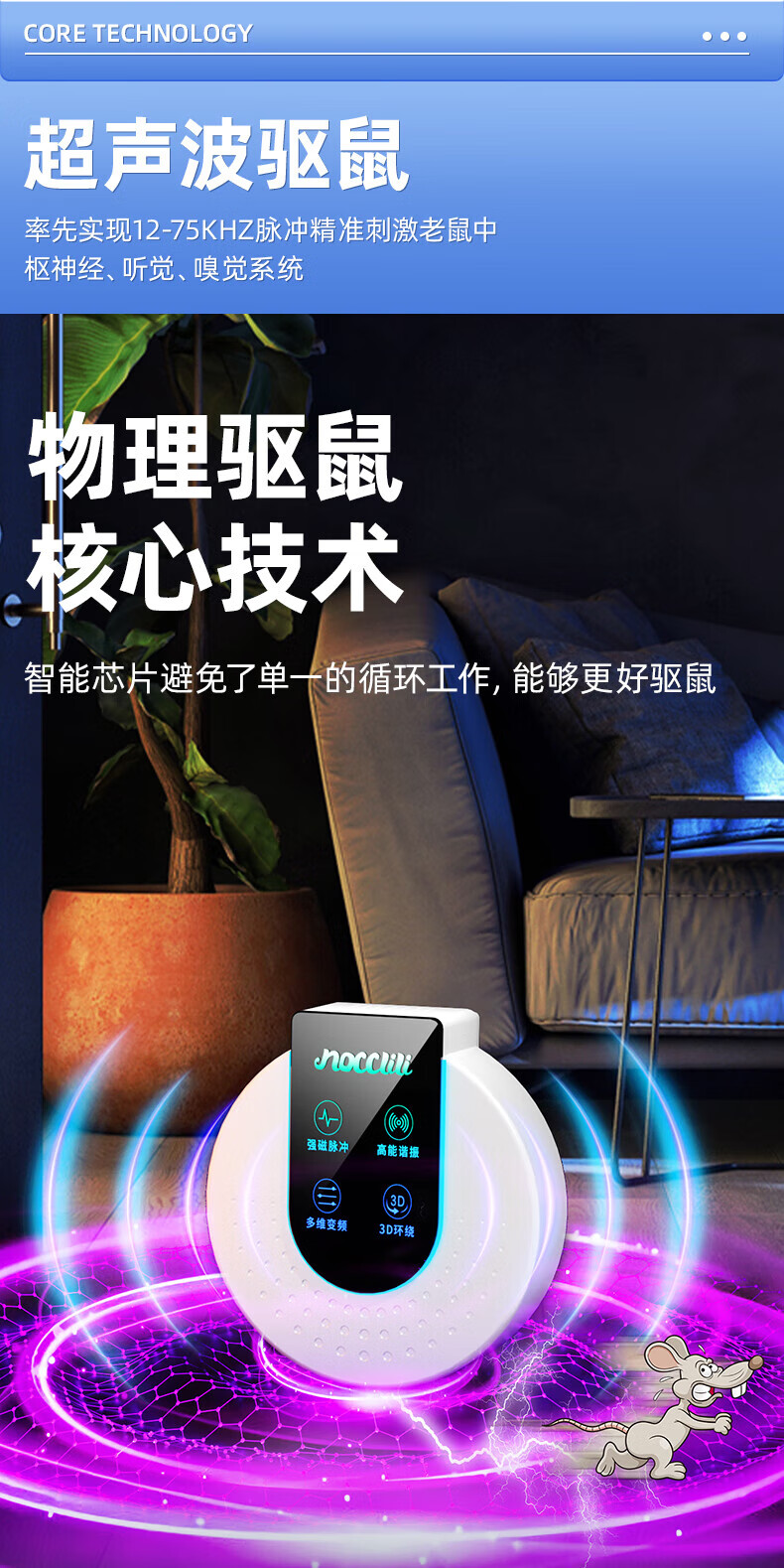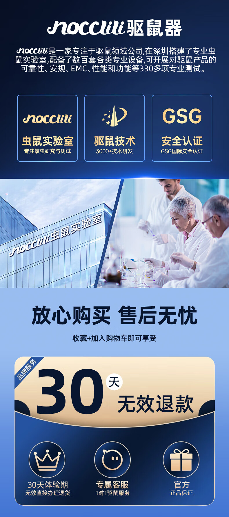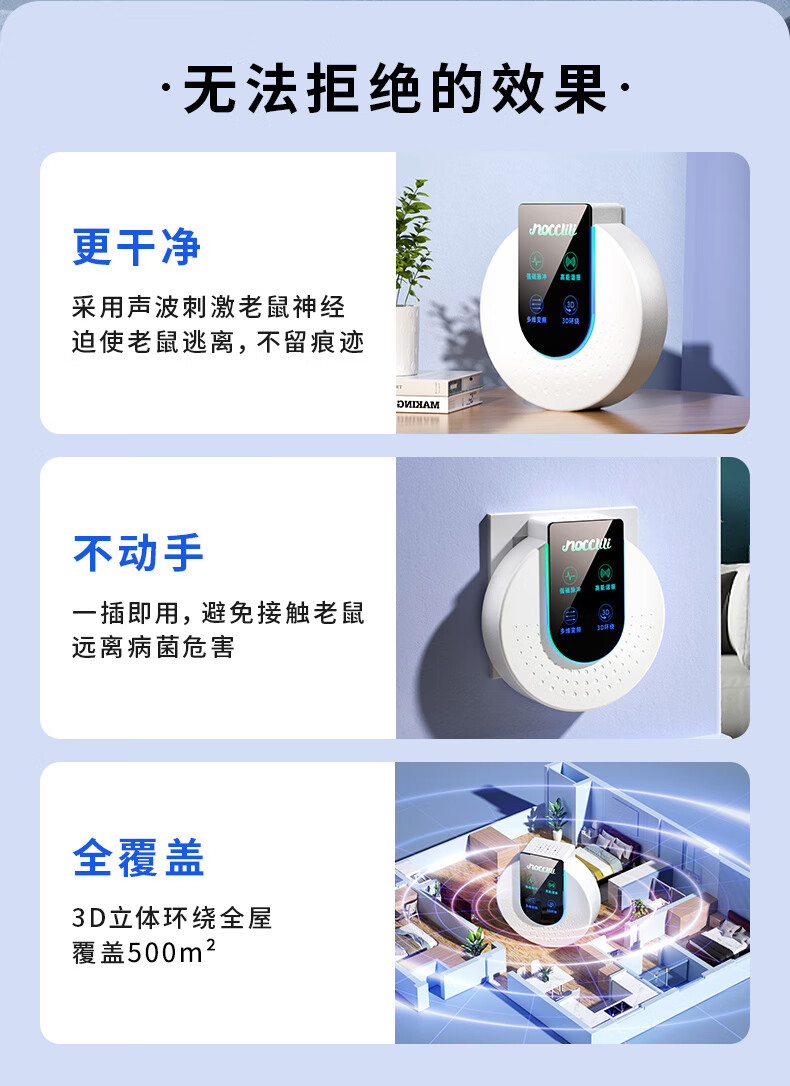 NOCCLILI超声波驱鼠器500㎡一窝锅端灭驱鼠商用家用强力老鼠克星驱鼠神器2