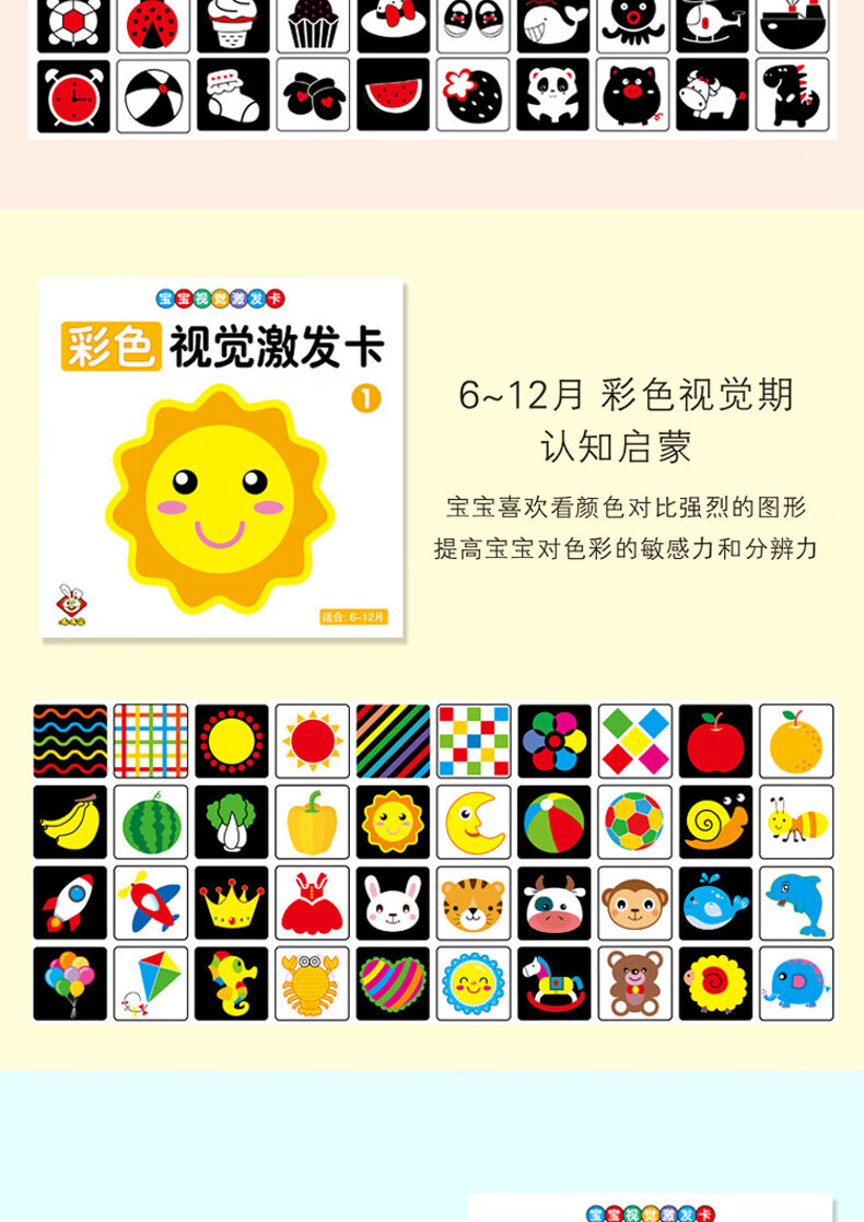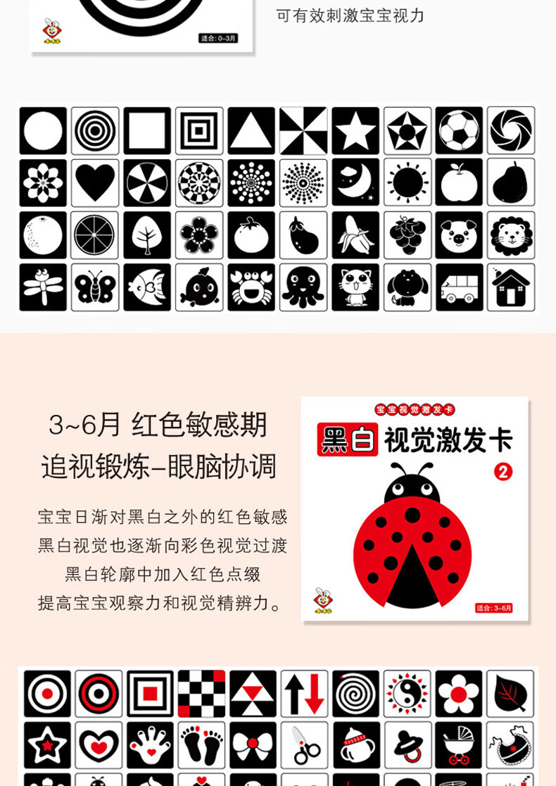 秘萌 黑白卡婴儿0-3月新生儿追视卡全套视觉激发彩色卡玩具新生儿礼物