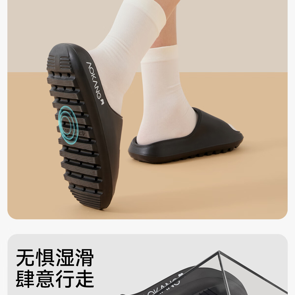 奥康(Aokang)踩屎感拖鞋男士夏季室内居家用防滑厚底eva洗澡凉拖鞋男户外穿 黑色 42-43 【适合41-42】