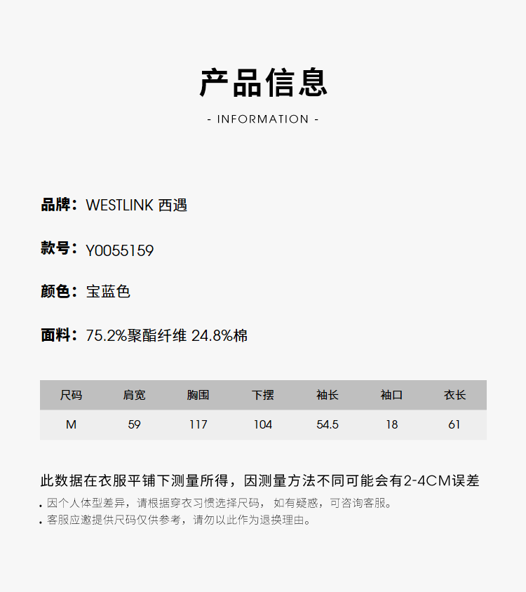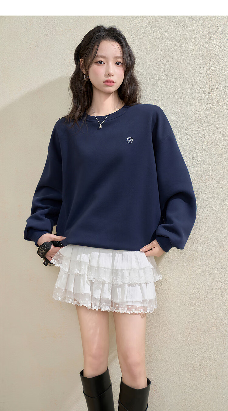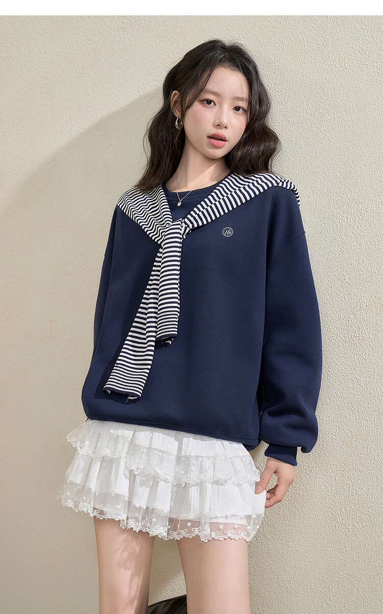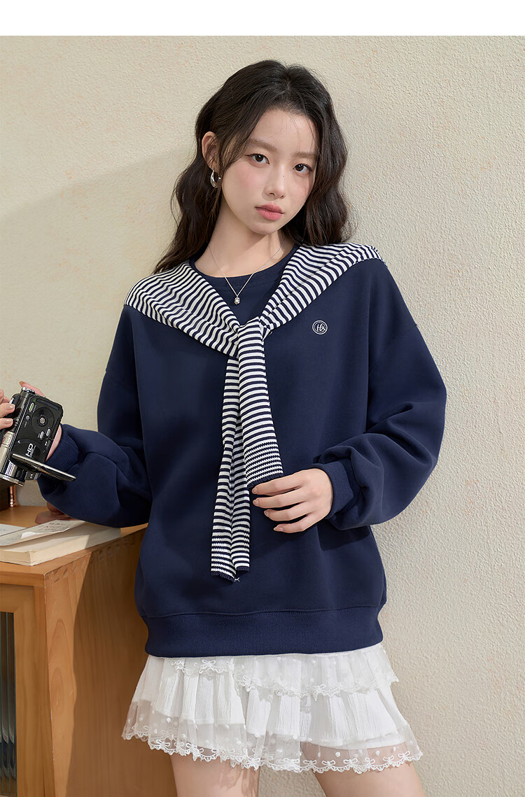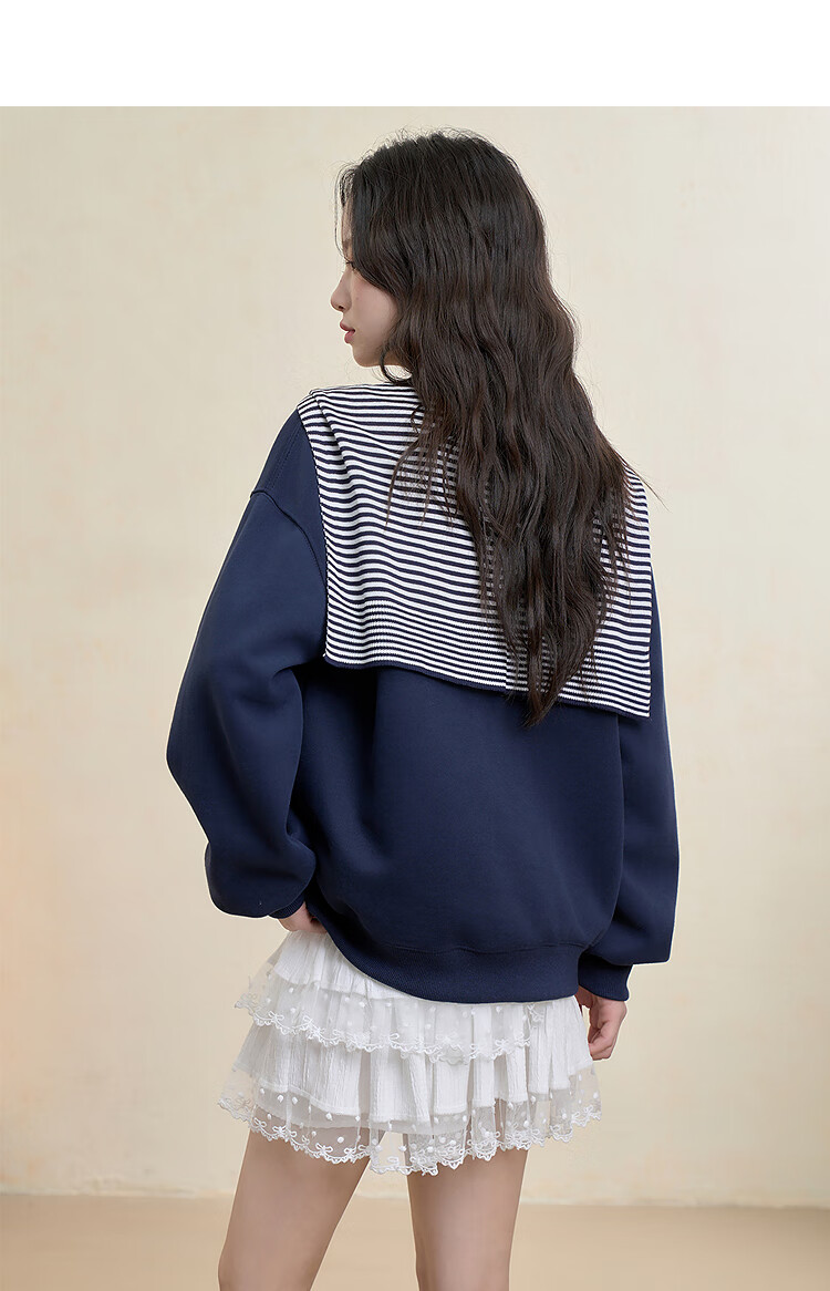 西遇(Westlink)西遇宽松圆领卫衣女秋季新款学院风条纹披肩叠穿长袖上衣 宝蓝色 (预售15天) M (160)