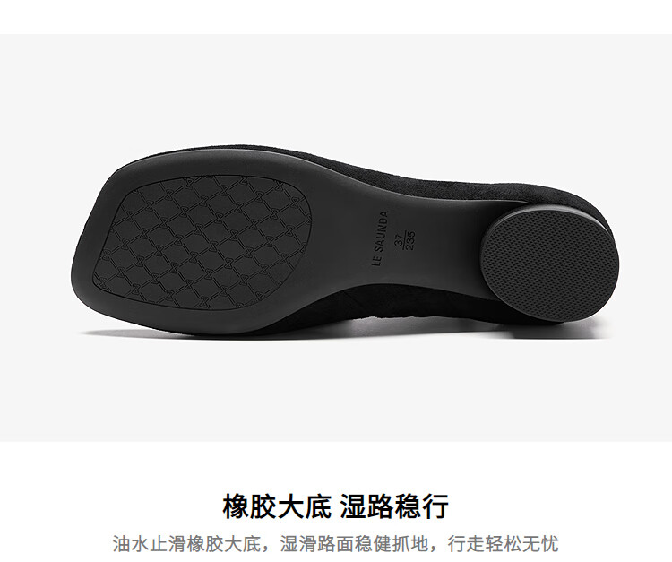 森达乐福鞋女鞋春秋新款商场同款通勤一脚蹬小皮鞋XCA01CA4 经典款-黑色 37