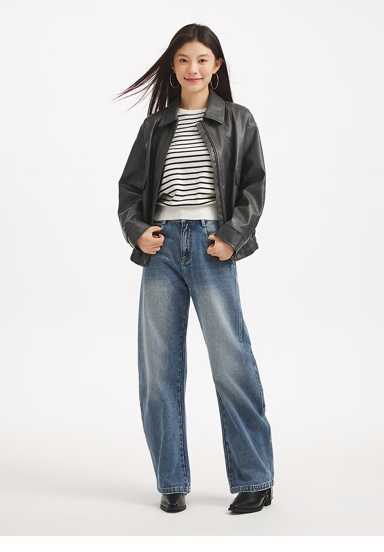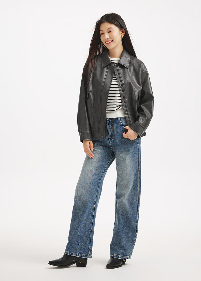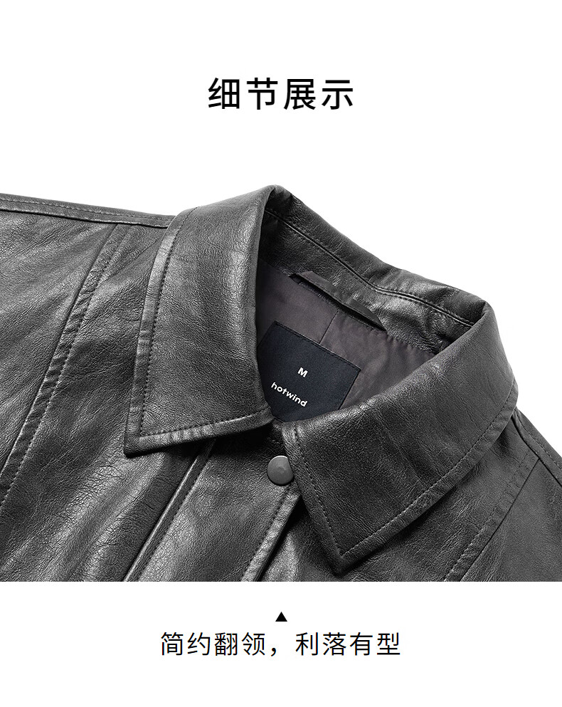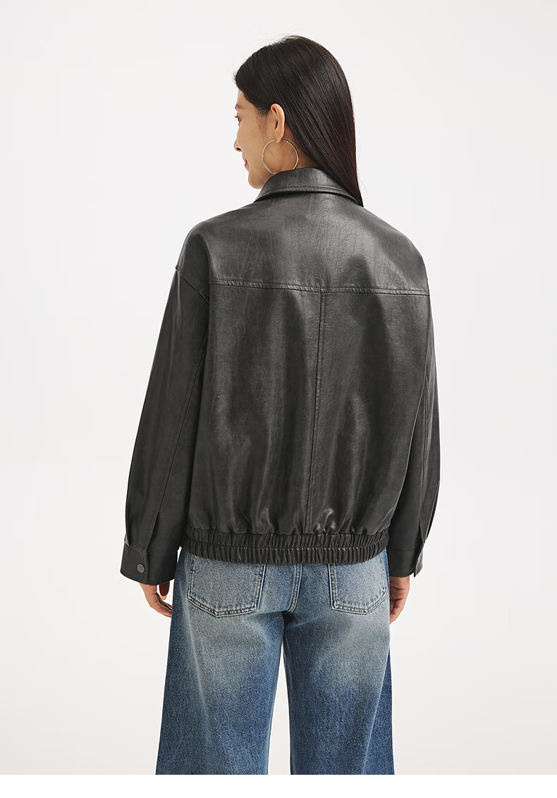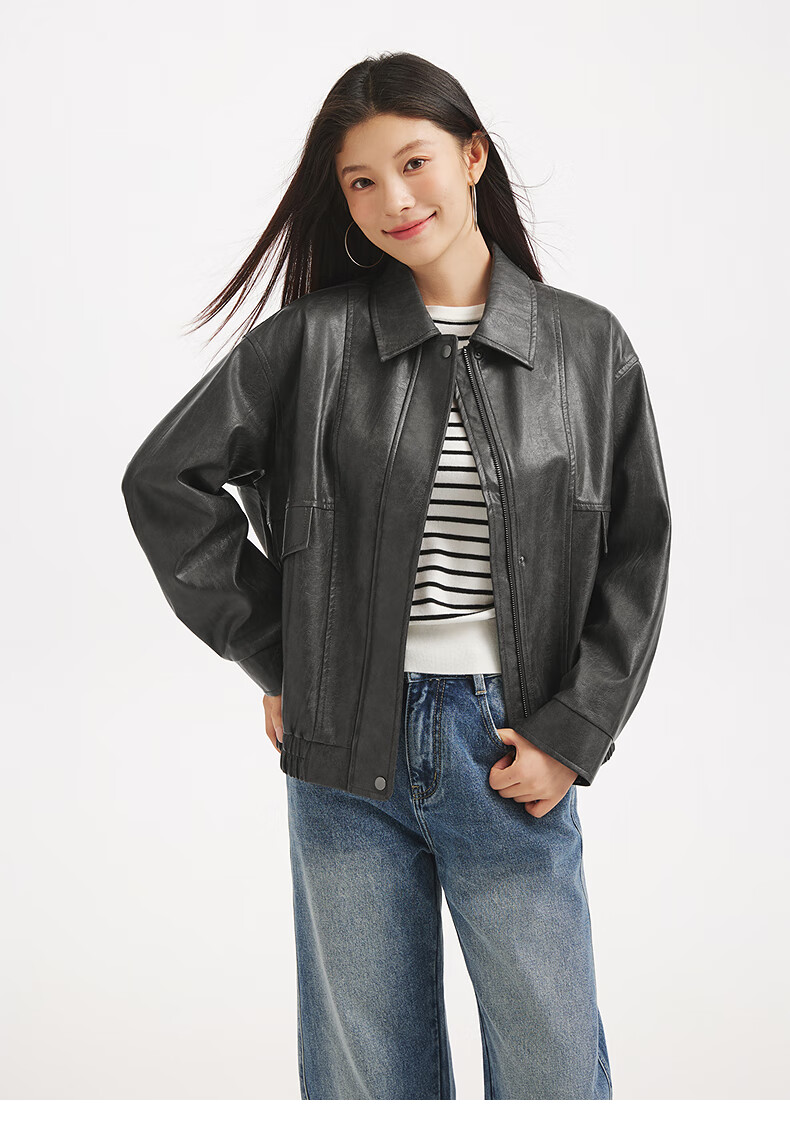 热风女士pu夹克外套2025年秋季新款双色仿皮夹克机车风复古外套 09灰色 M