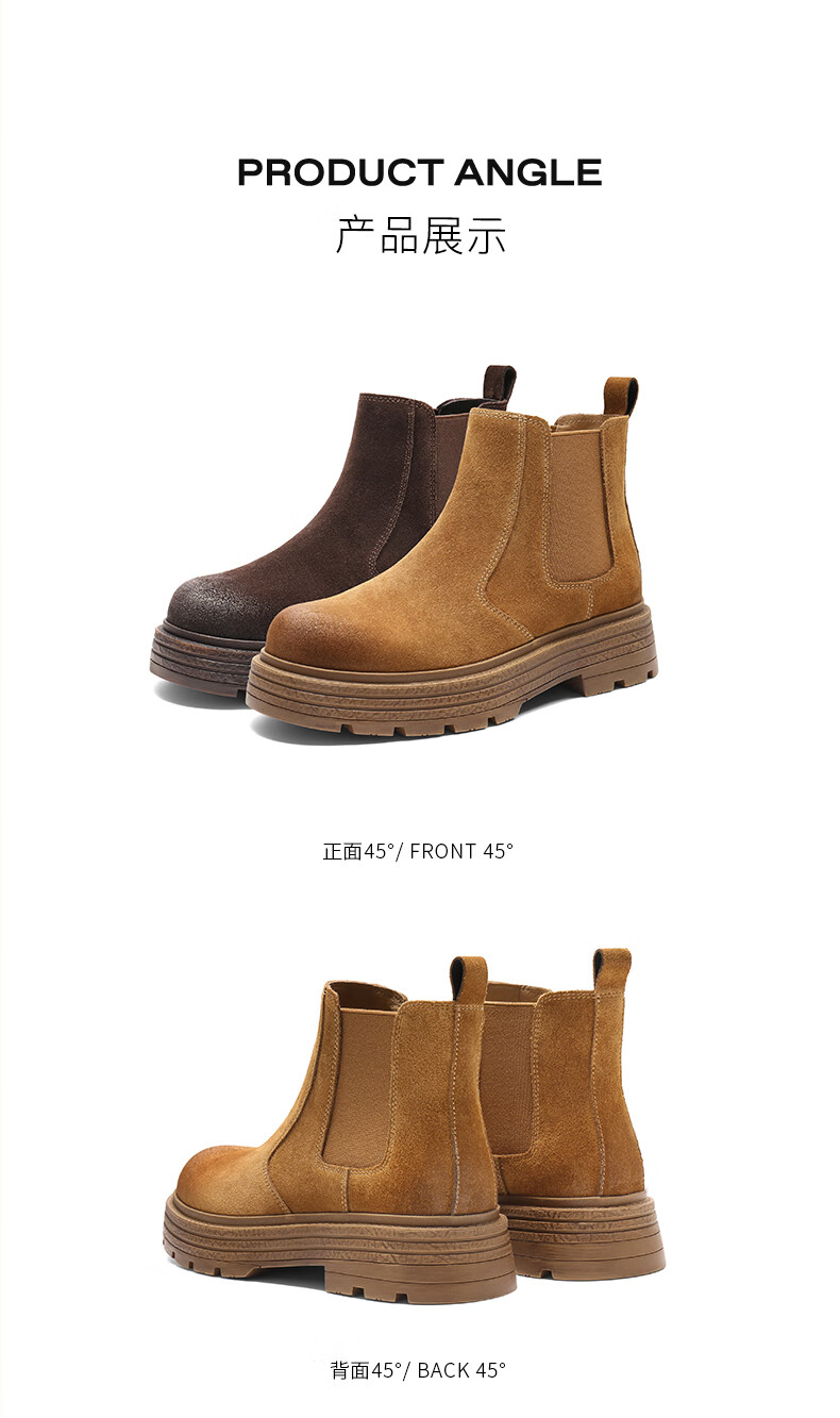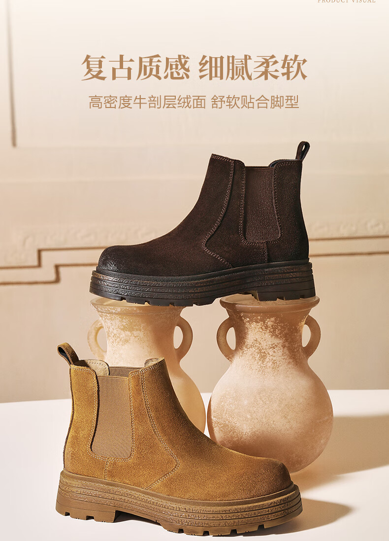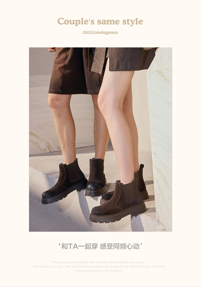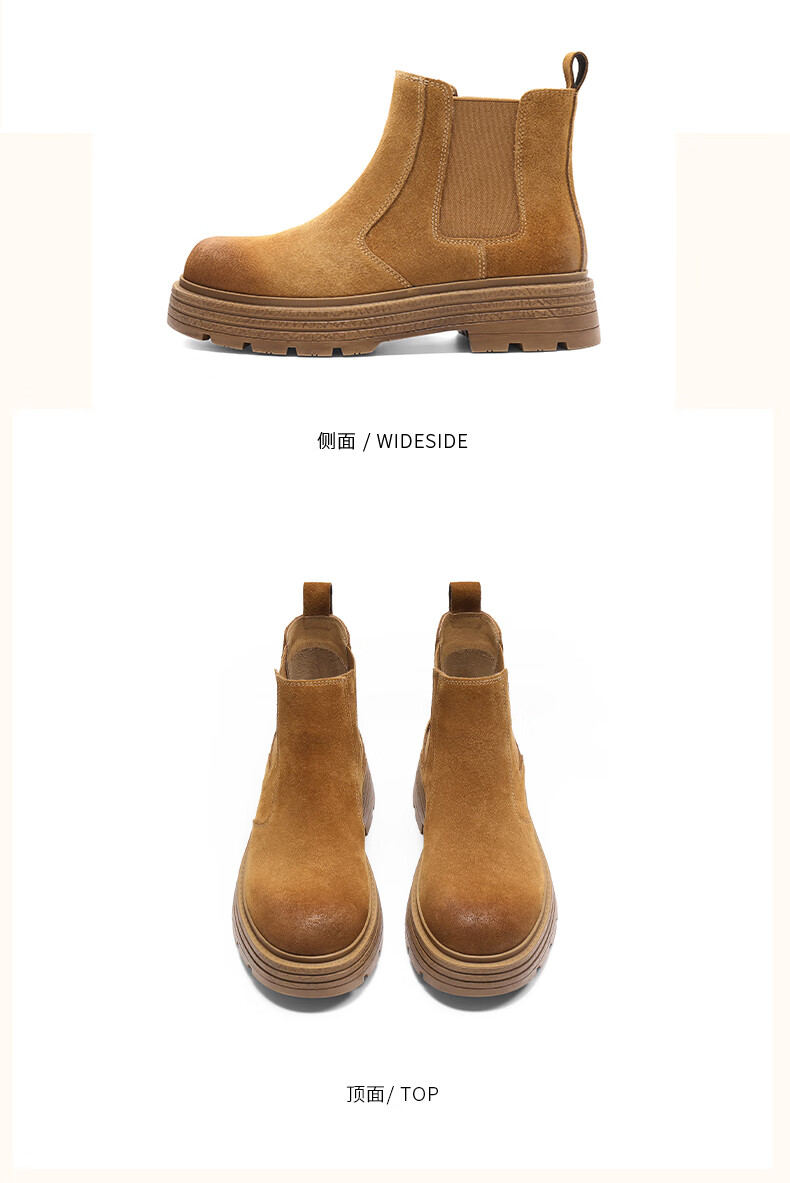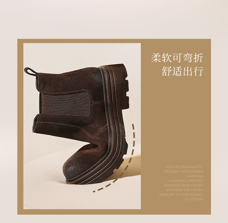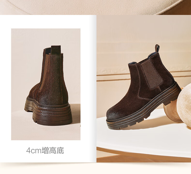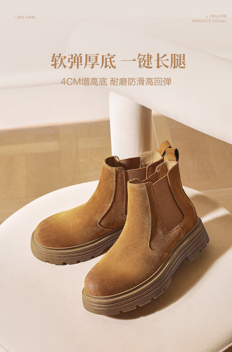 百丽(Belle)张凌赫同款擦色切尔西靴女2025冬新厚底增高休闲短靴B2875DD5 棕色 39