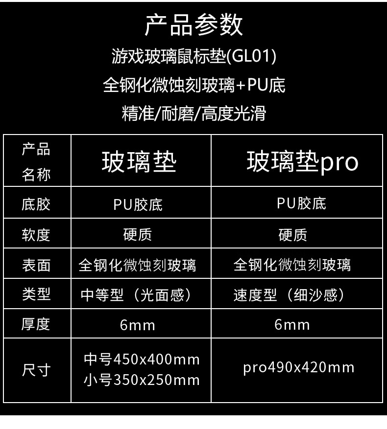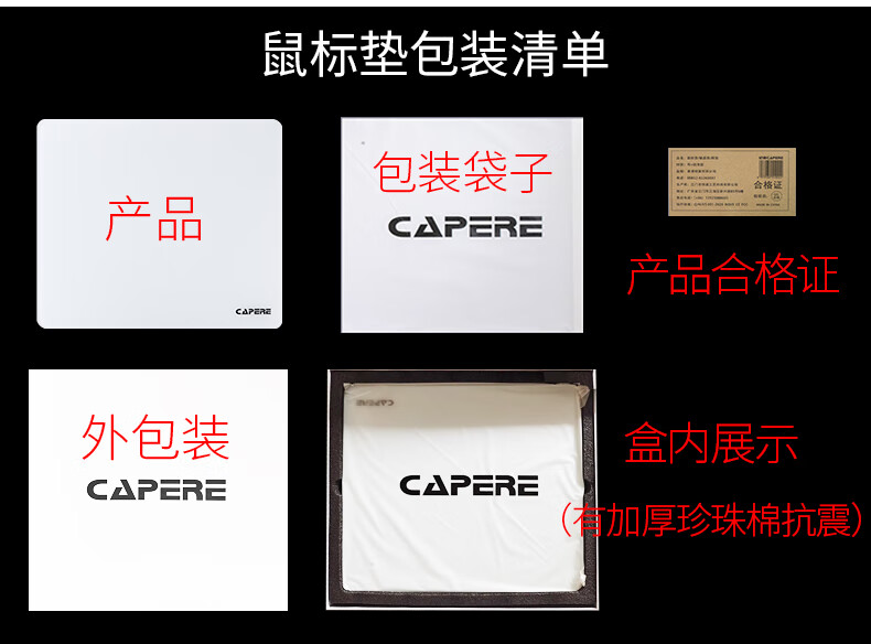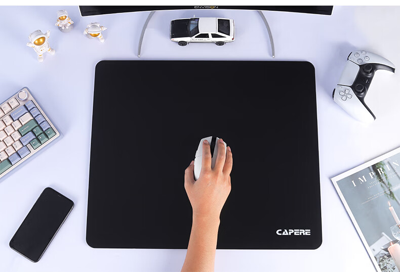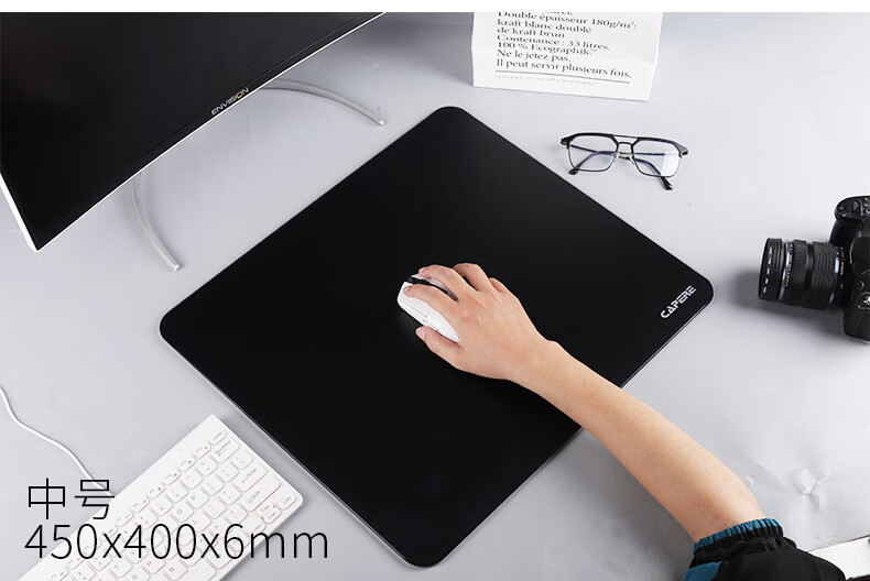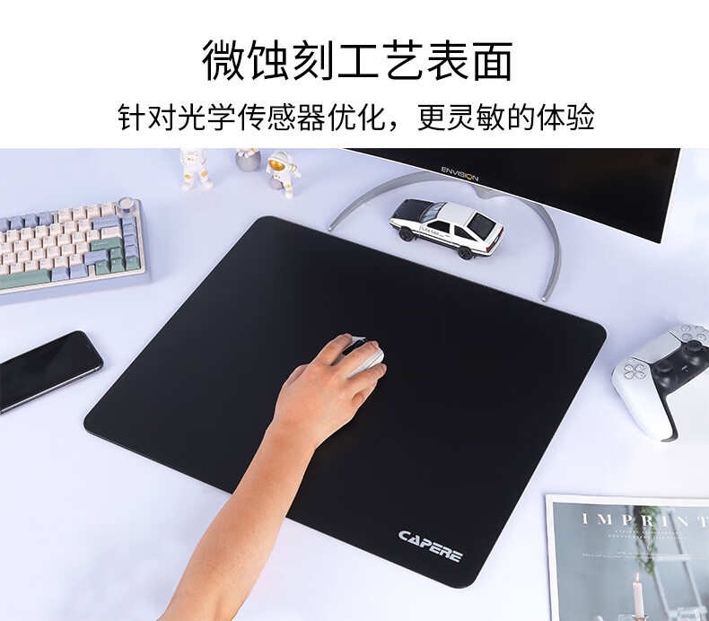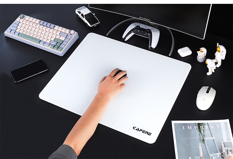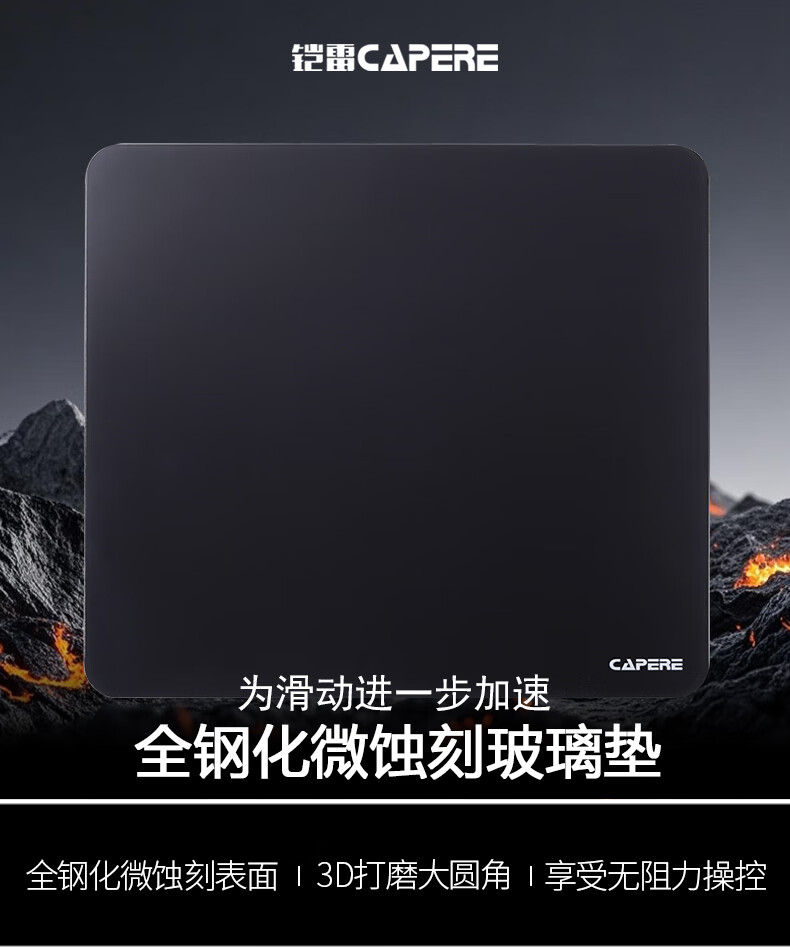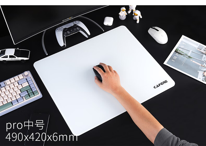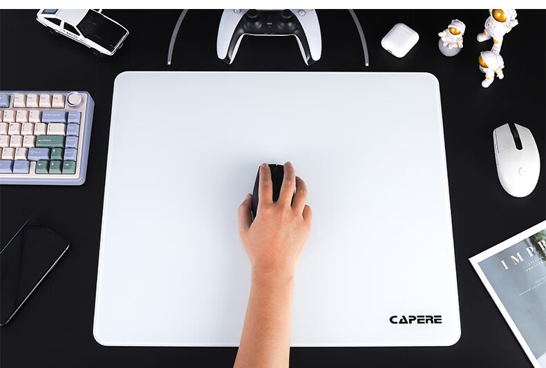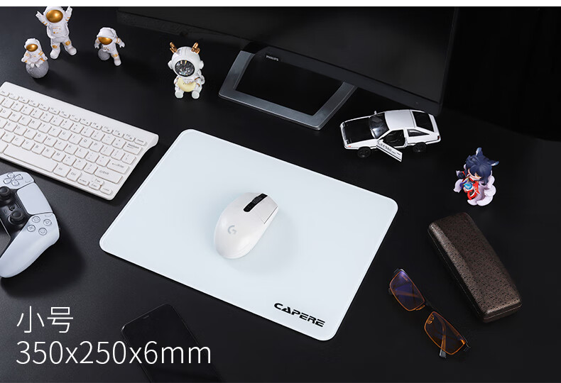 CAPERE(铠雷)防水全钢化光滑玻璃垫速度型升级游戏鼠标垫 加厚 黑色电竞简约中号防滑 玻璃垫【皓月白】小号