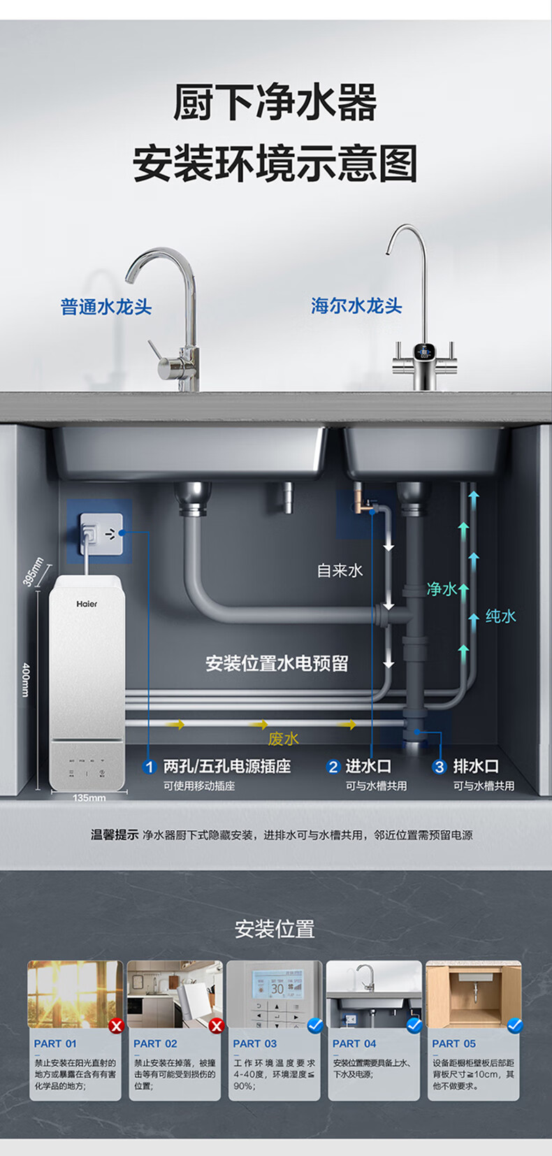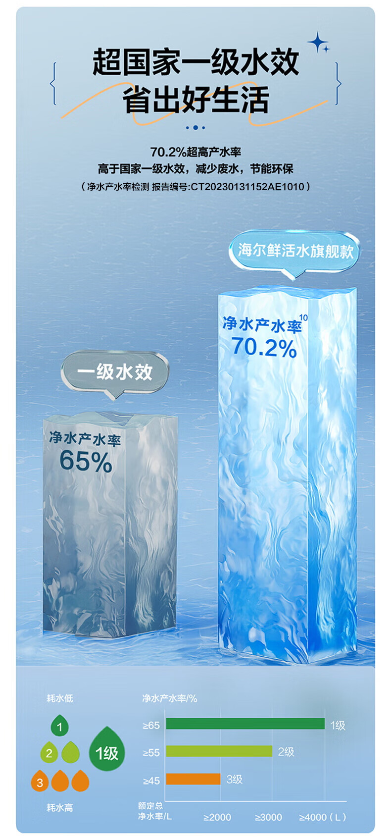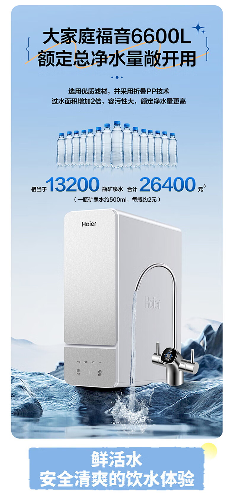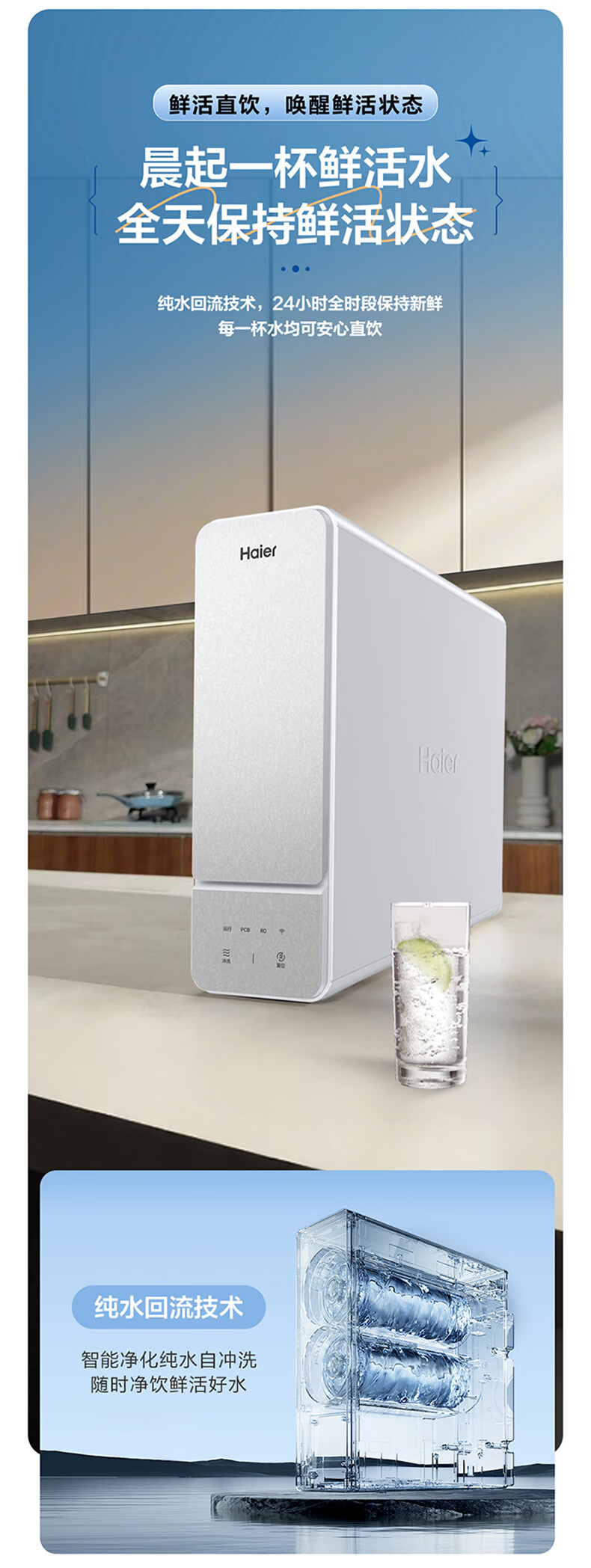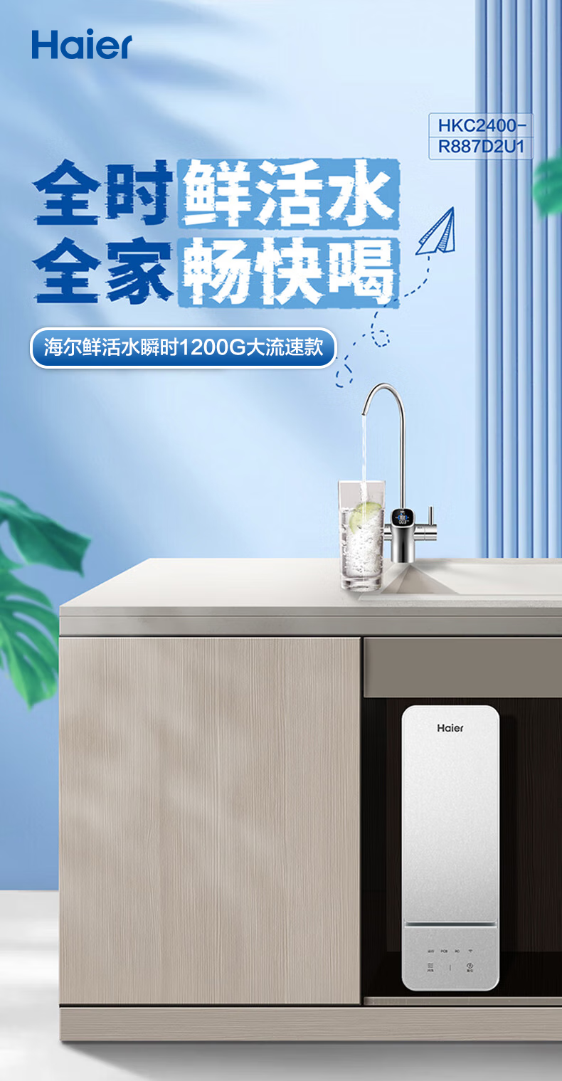 海尔(Haier)1200G鲜活水净水器 政府补贴 家用星河厨下净水机瞬时大流速净饮机双出水5年RO反渗透