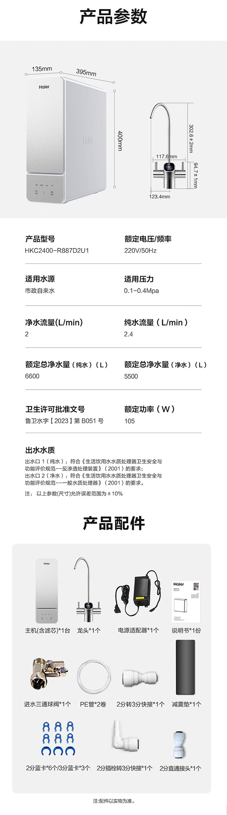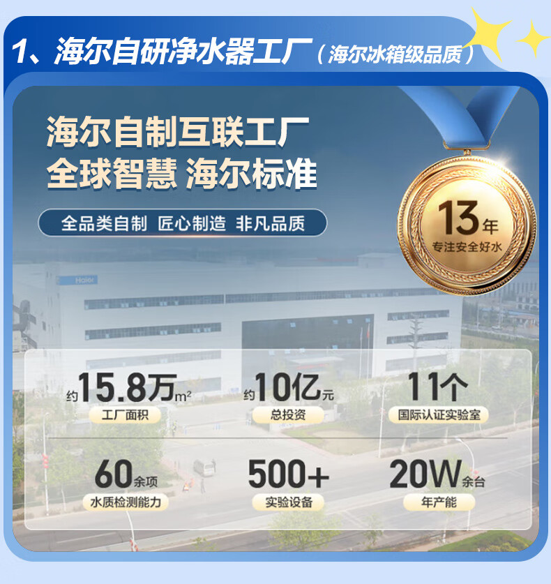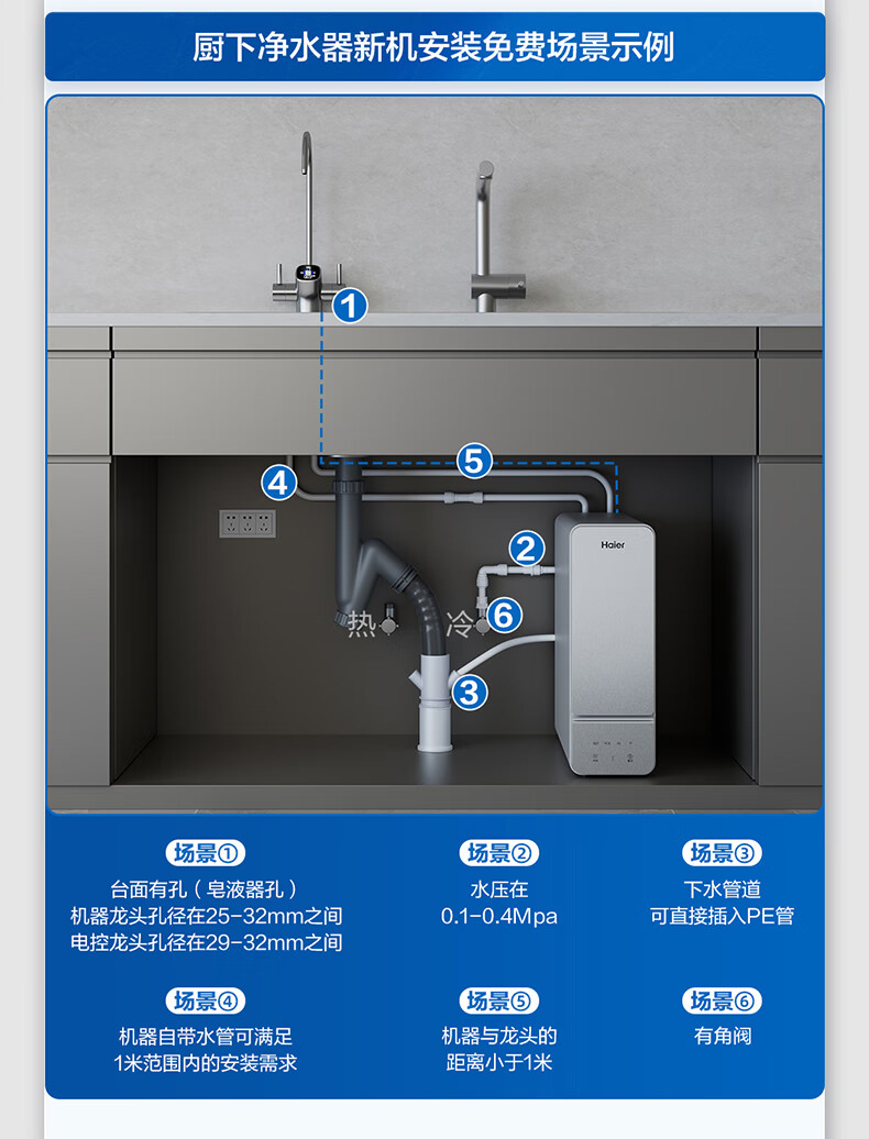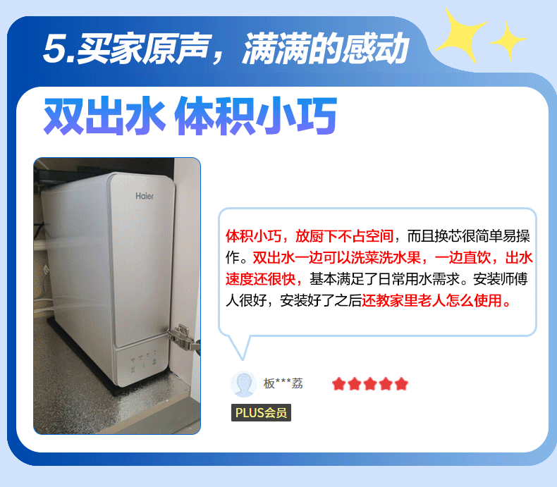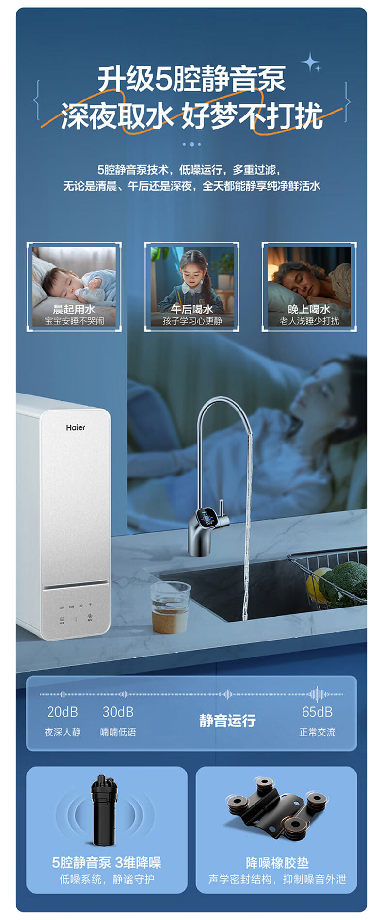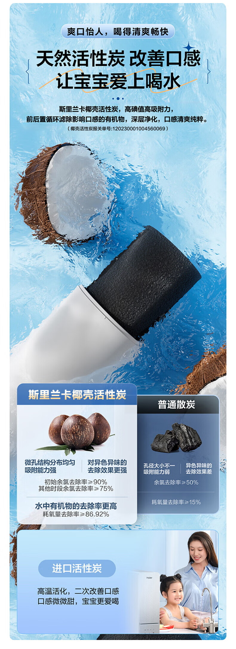 海尔(Haier)1200G鲜活水净水器 政府补贴 家用星河厨下净水机瞬时大流速净饮机双出水5年RO反渗透
