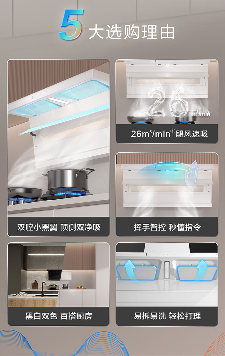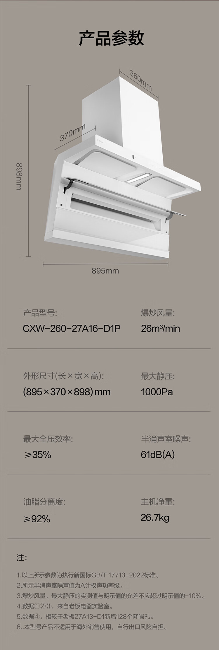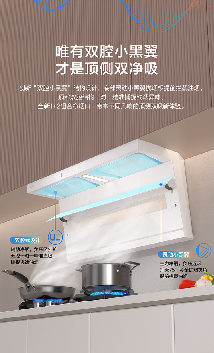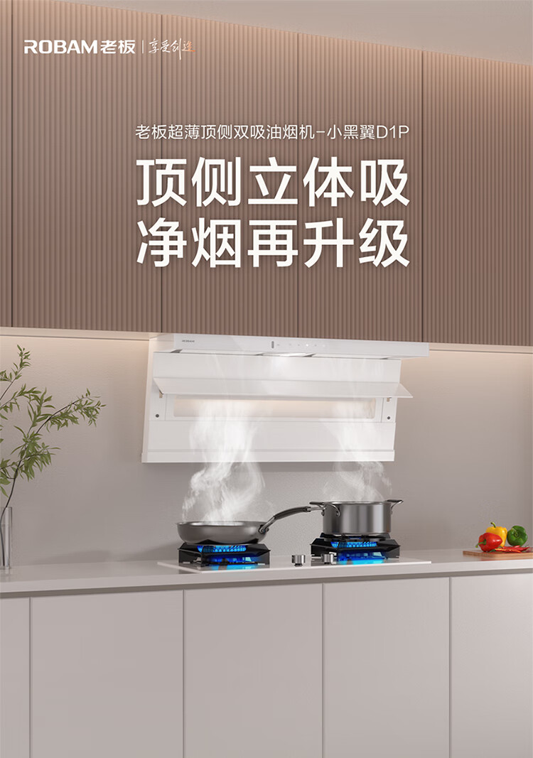 老板(Robam)小黑翼D1P抽油烟机顶侧双吸7字型26家用大吸力静音一级能效以旧换新国家补贴20% 白色27A16-D1P