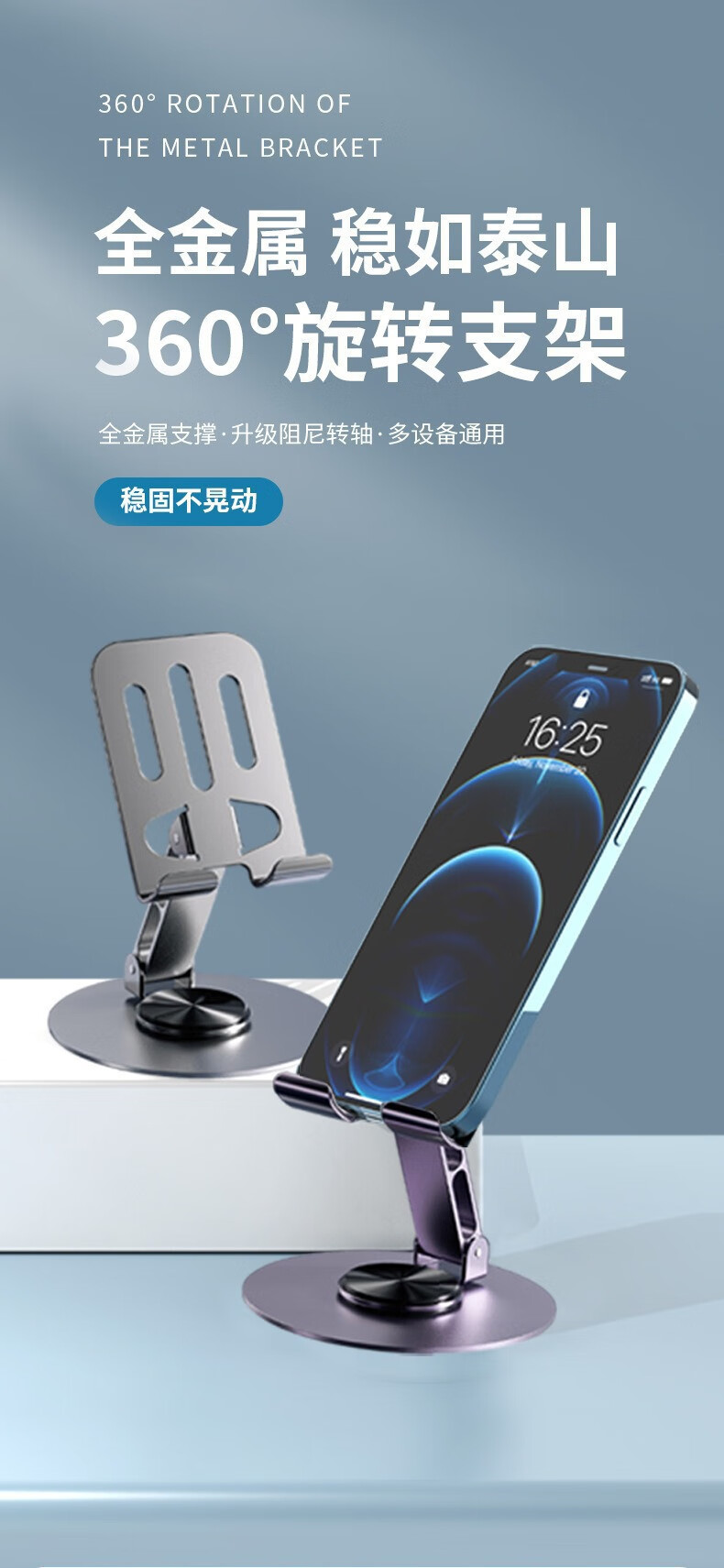 【精选】款金属手机支架360度旋转调节折叠懒人平板桌面手机支架 2.0最新款(紫罗兰(1个装)