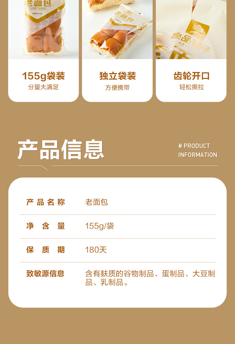 良品铺子 老面包155g 休闲零食面包点心早餐饱腹下午茶代餐