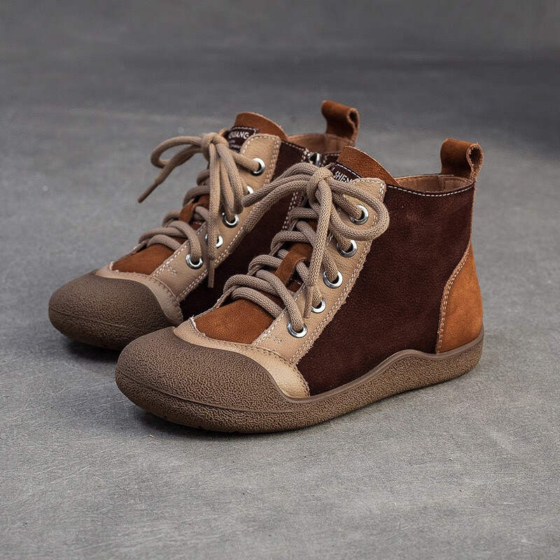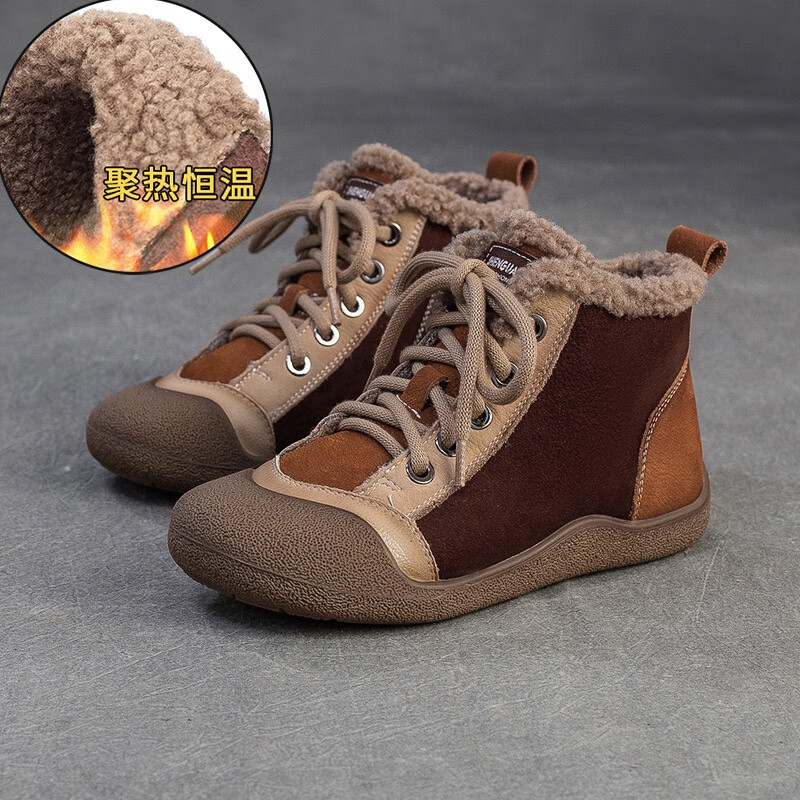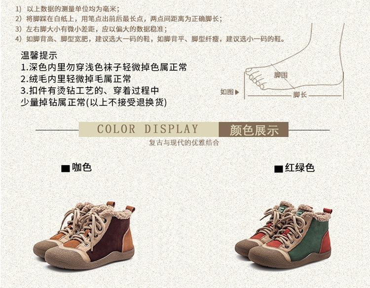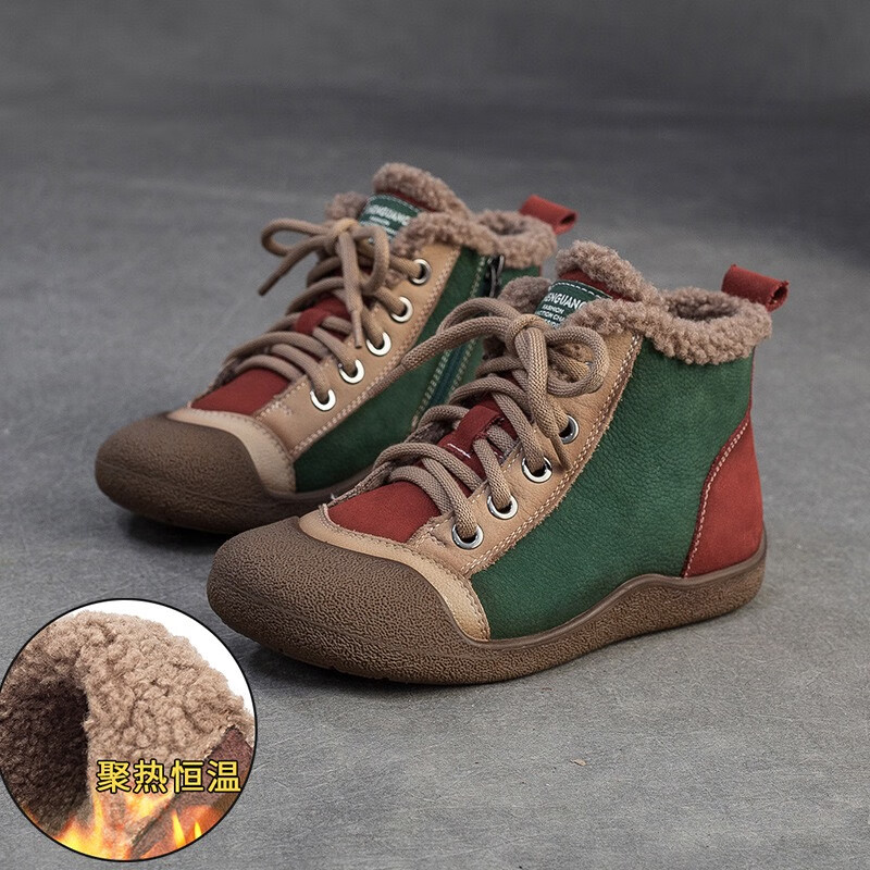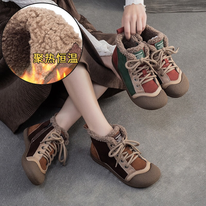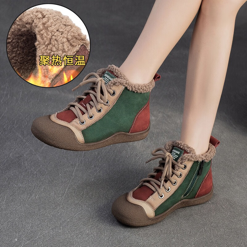 稻草人(MEXICAN)真皮复古高帮鞋女2026秋冬新款侧拉链羊羔绒短靴休闲马丁靴雪地靴 绿色【专柜版】 39