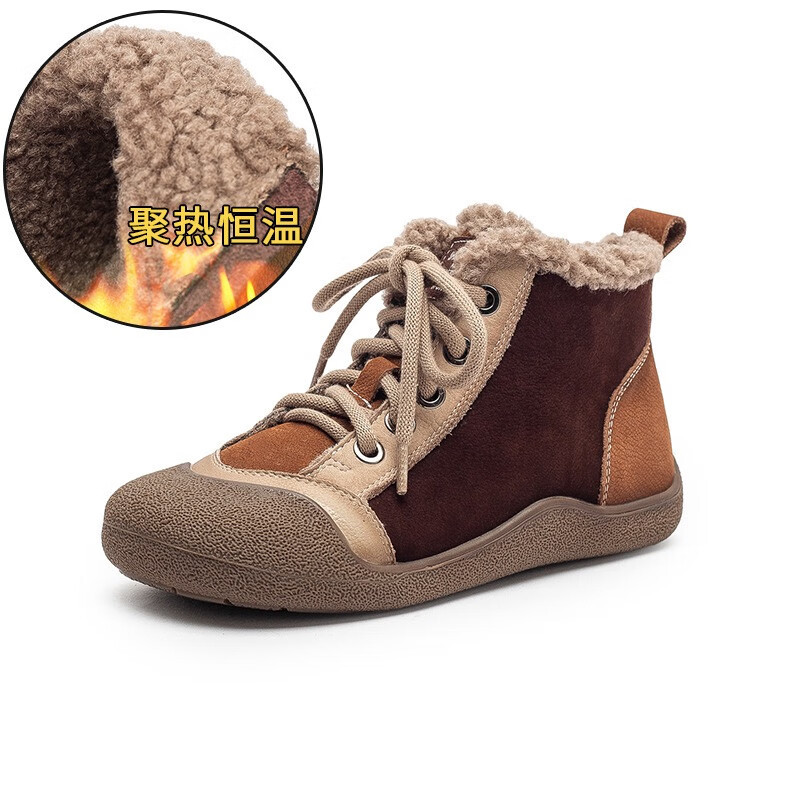 星期六厚底雪地靴女2025新款冬季加绒加厚面包鞋防滑短靴保暖棉鞋 咖啡色 【加绒保暖】 35
