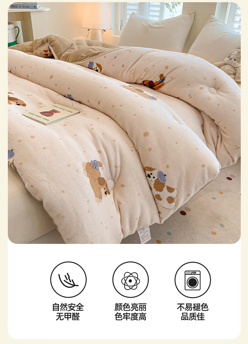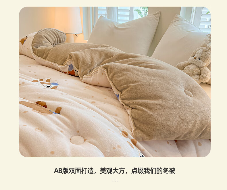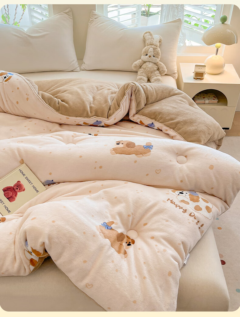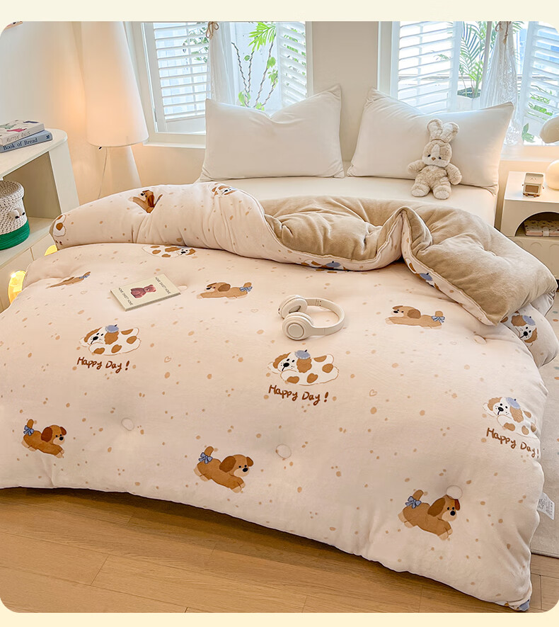 猫人(MiiOW)冬季牛奶绒被子冬被加厚保暖被单双人加绒被芯棉被宿舍四季通用 欢乐小狗【双面加密丨加厚保暖】 150*200cm秋冬被【重约4斤】