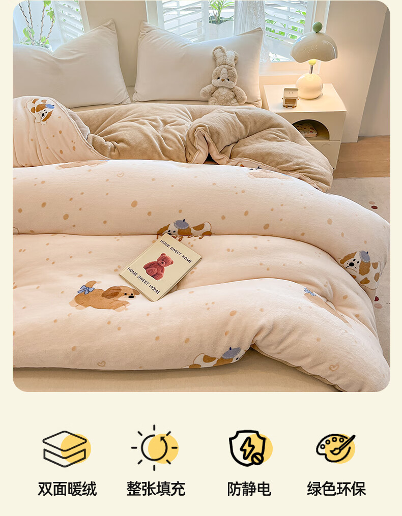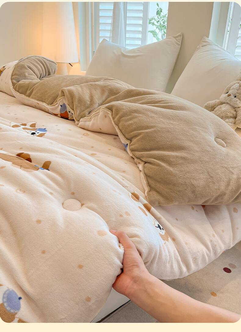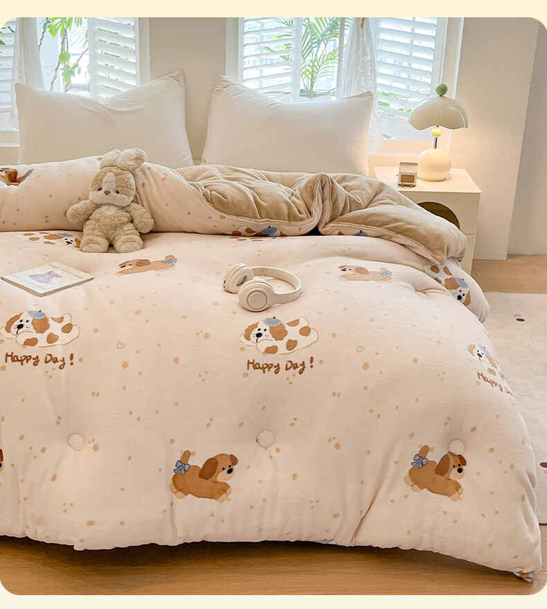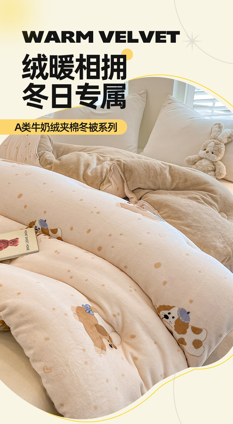 猫人(MiiOW)冬季牛奶绒被子冬被加厚保暖被单双人加绒被芯棉被宿舍四季通用 欢乐小狗【双面加密丨加厚保暖】 150*200cm秋冬被【重约4斤】