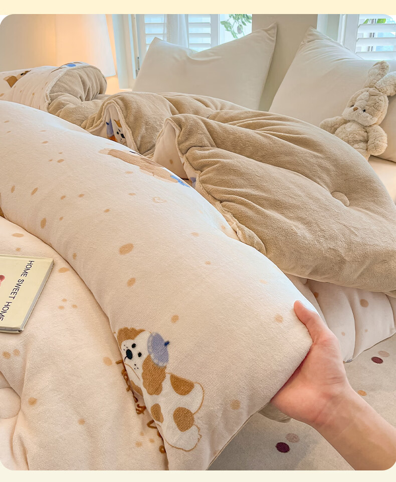 一默四件套秋冬季牛奶绒被套床单枕套家纺床上用品姜饼人牛奶绒四件套 姜饼人 床单款 (被套200*230cm) 四件套