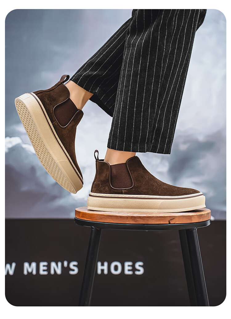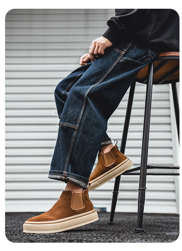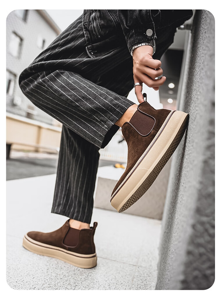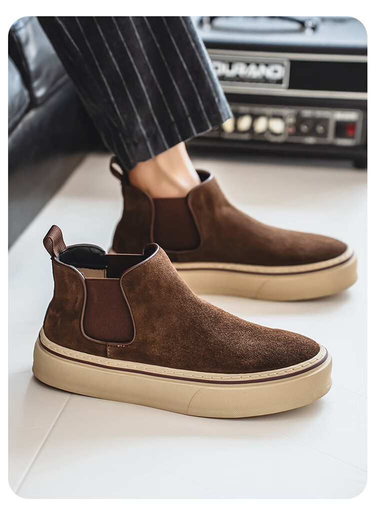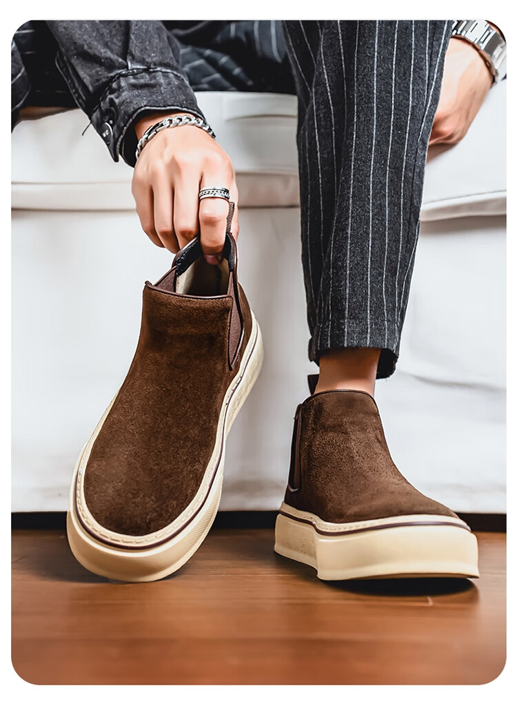 稻草人(MEXICAN)马丁靴男款冬季英伦风棕色复古高帮皮鞋男士一脚蹬真皮厚底工装靴 咖色 39