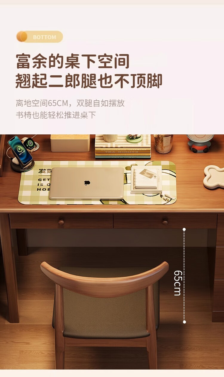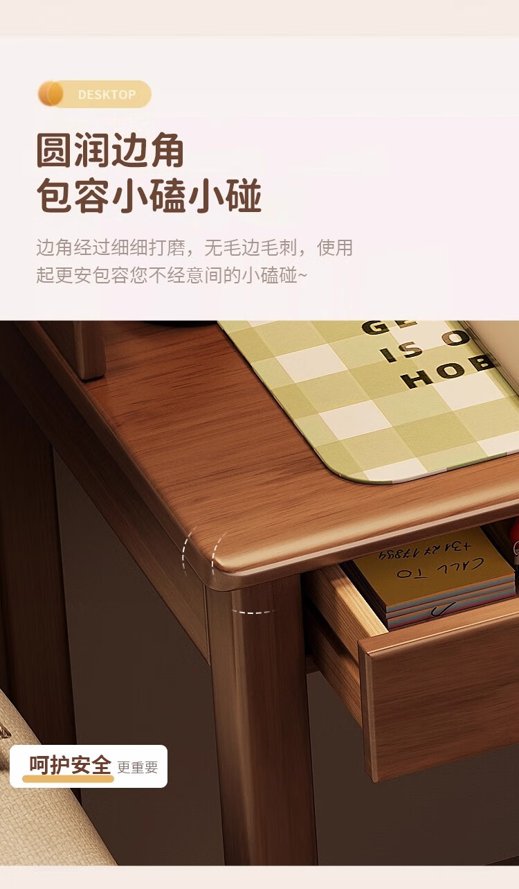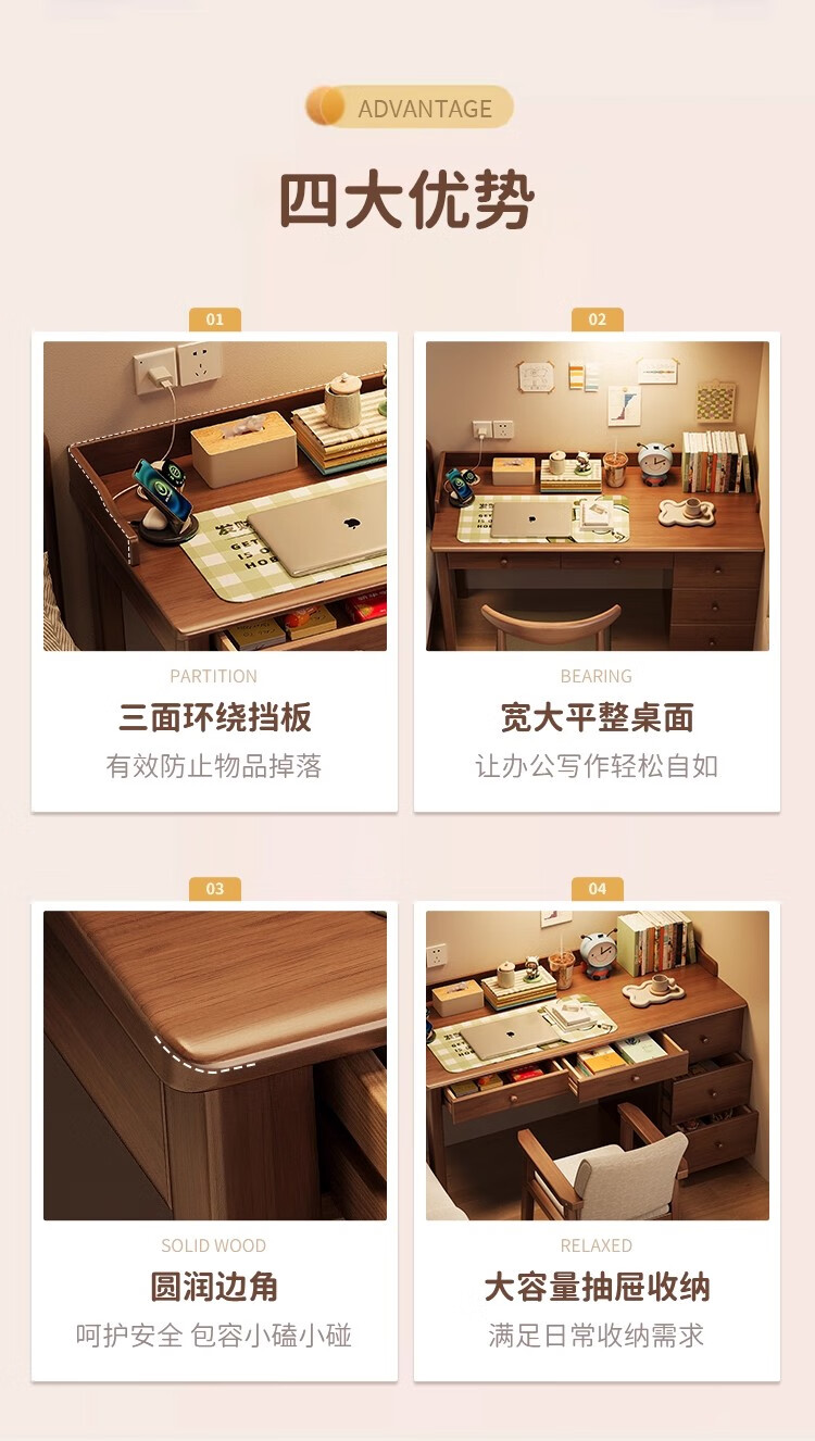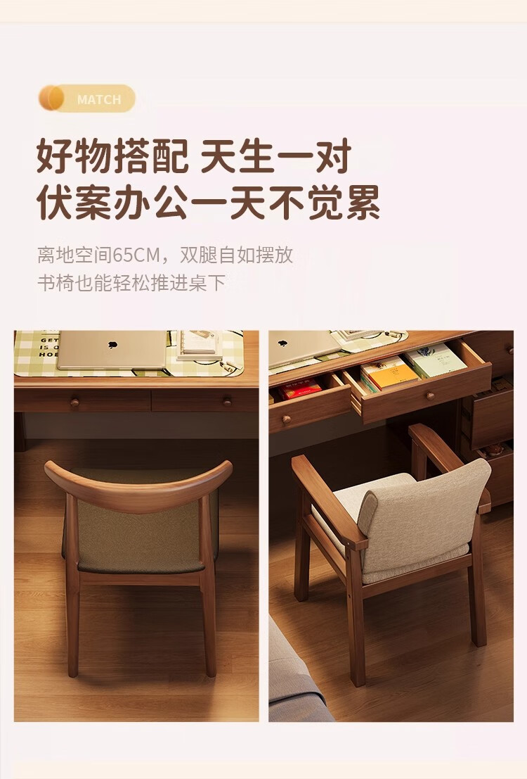 芈迪实木书桌书柜一体卧室家用电脑桌小户型学生学习桌写字桌办公桌 胡桃色单桌 100*60*75cm