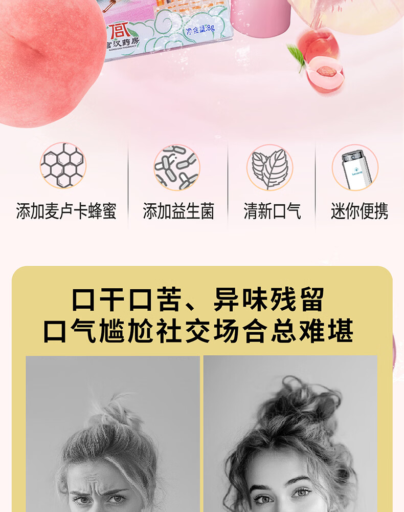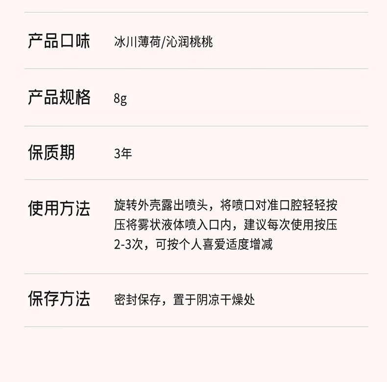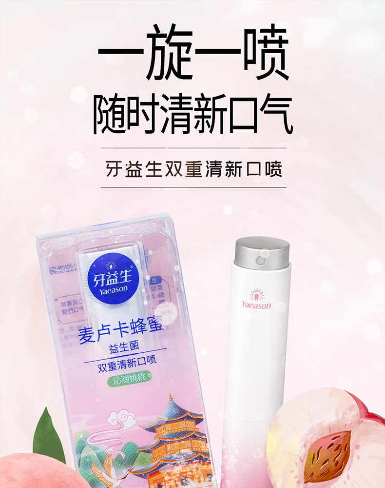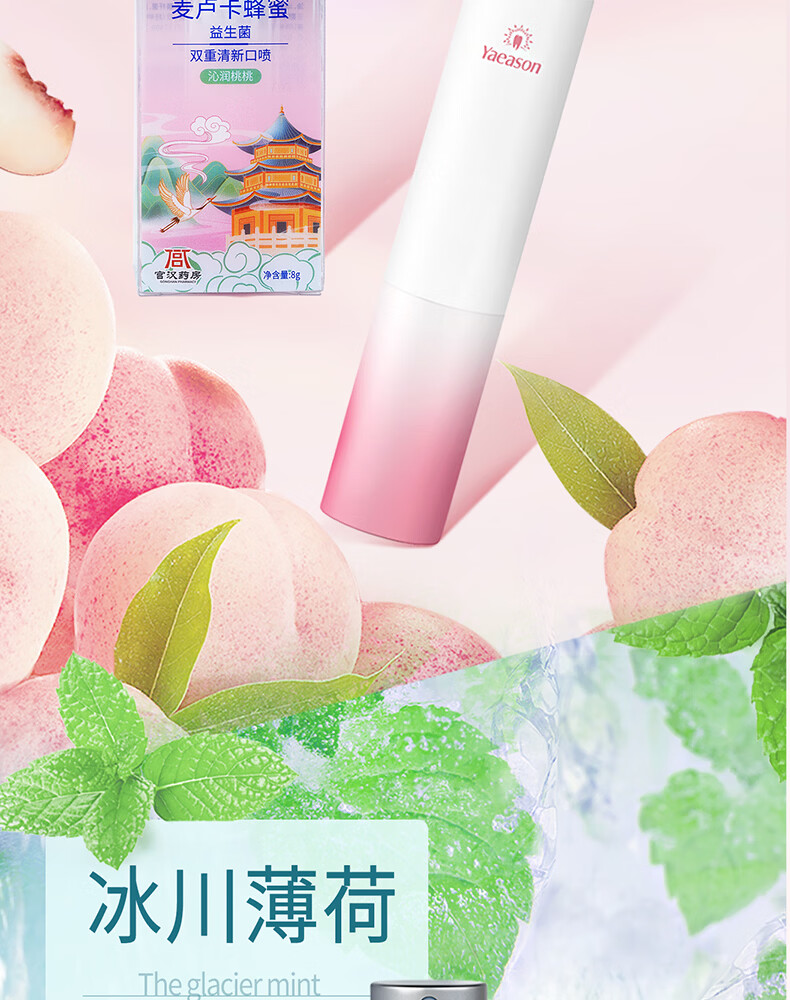牙益生麦卢卡蜂蜜益生菌双重冰川薄荷口喷 清新除臭 沁润桃桃8g