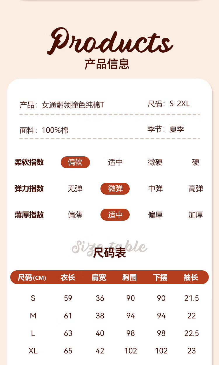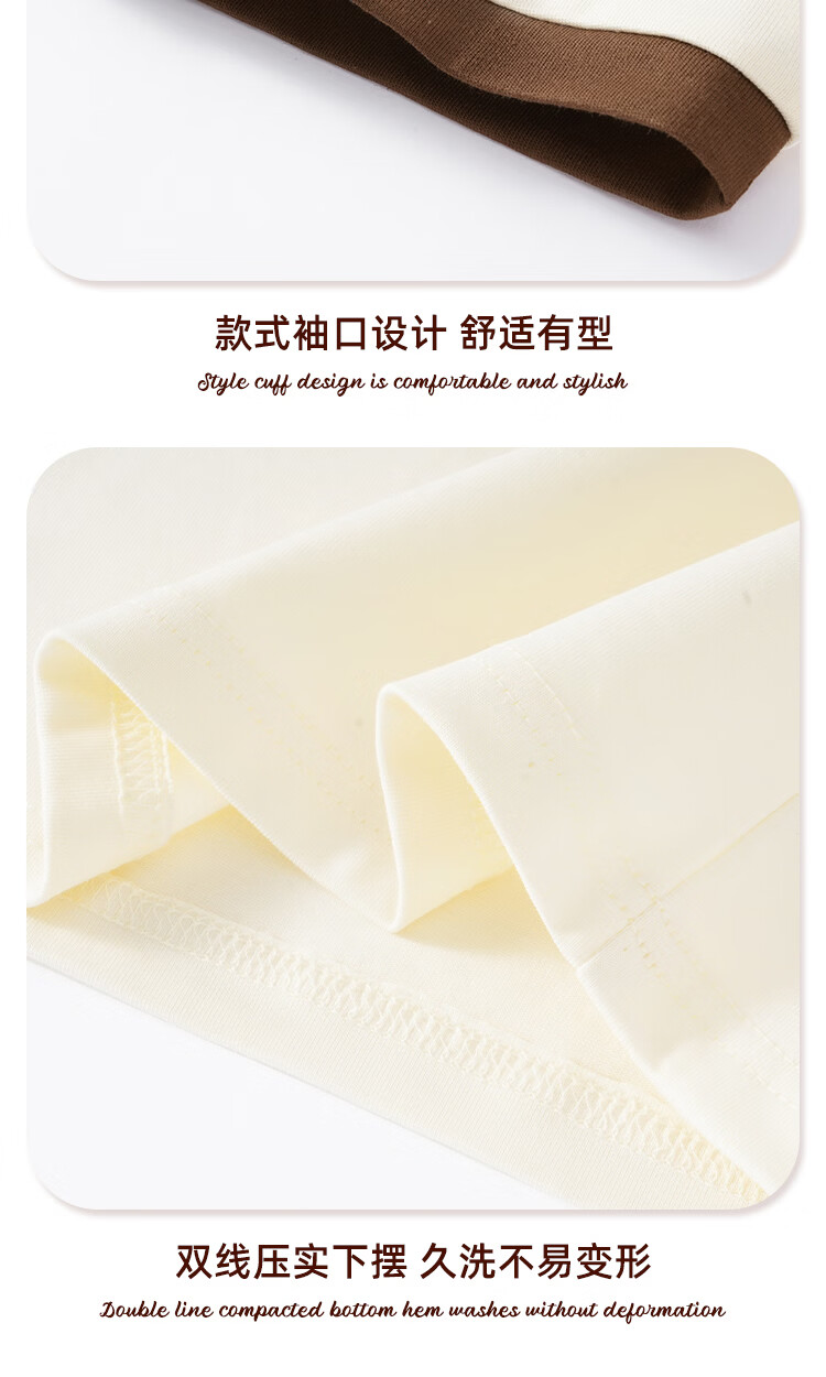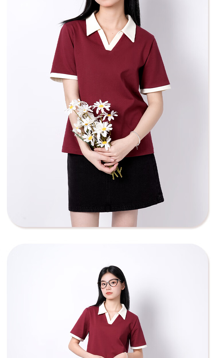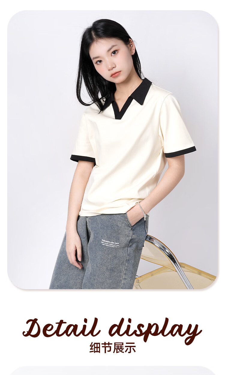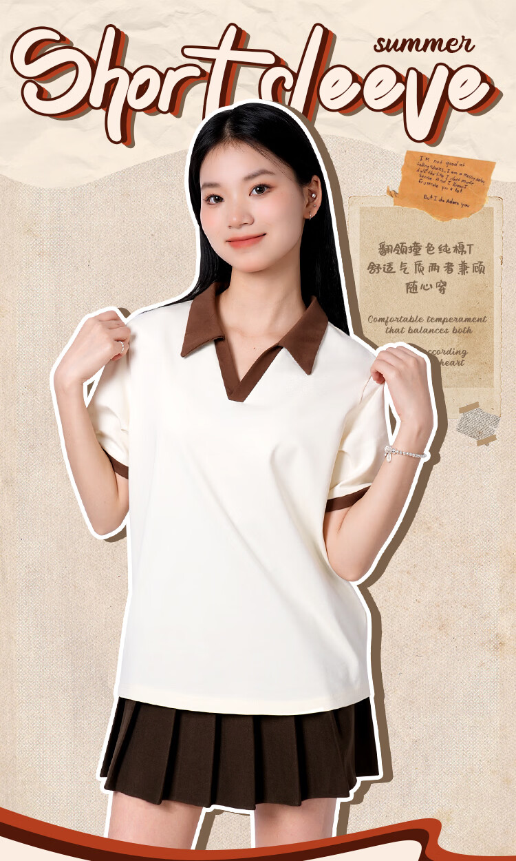 真维斯(Jeanswest)polo领短袖女生t恤春夏季2026新款爆款正肩纯棉翻领体恤衫V领上衣 米撞棕 纯色 XL