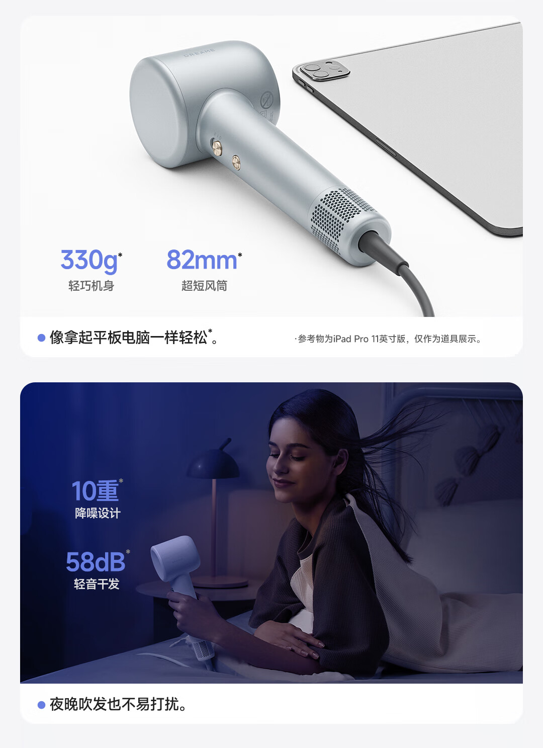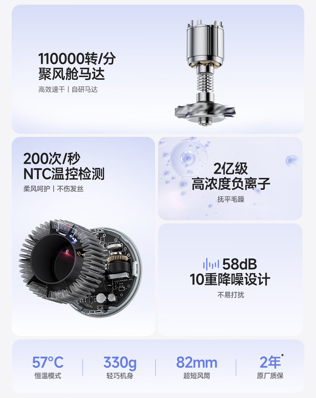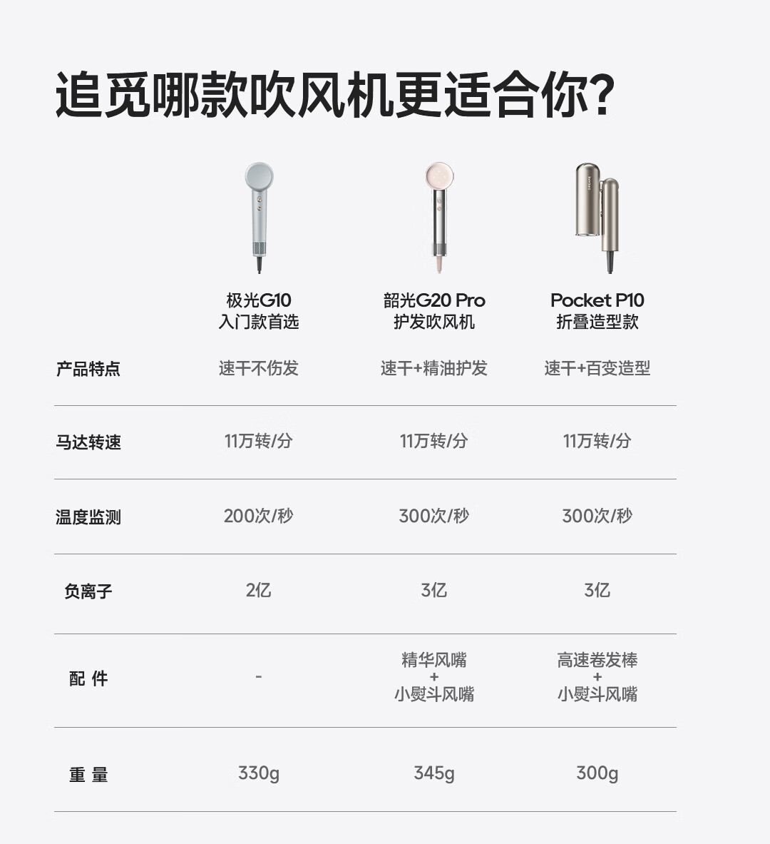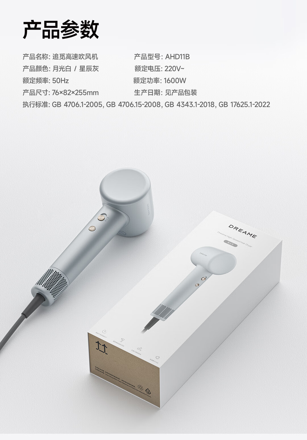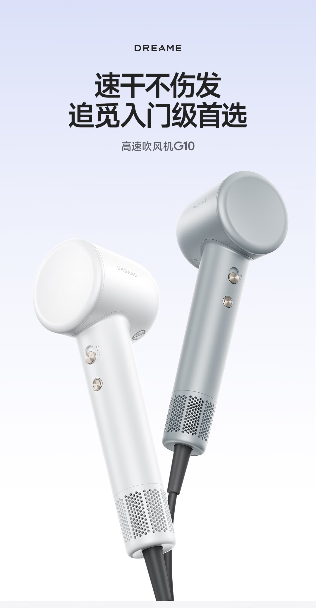 追觅G10高速家用电吹风大功率速干吹风筒负离子大风力低噪音无叶吹风机 灰色哑光AHD11B 礼物