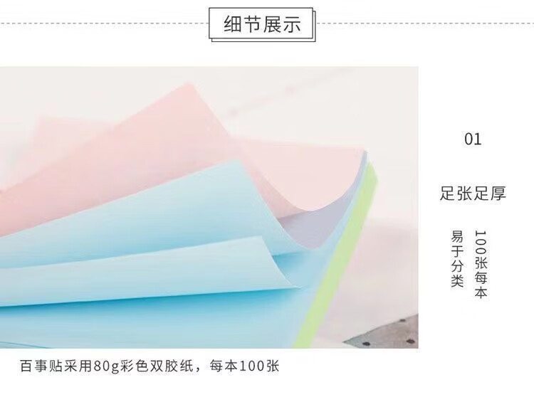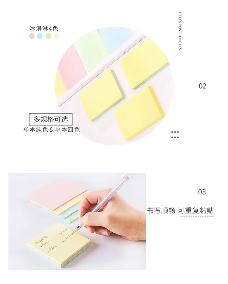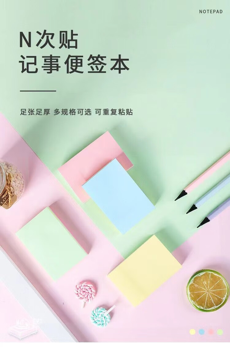 便利贴彩色便签纸ins风记事贴可撕取便签纸100张/个 76*50mm六本装(共600张)四色款