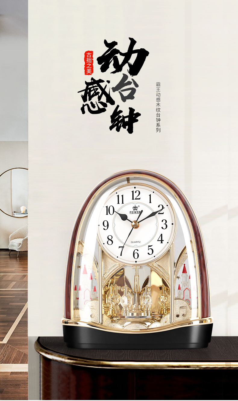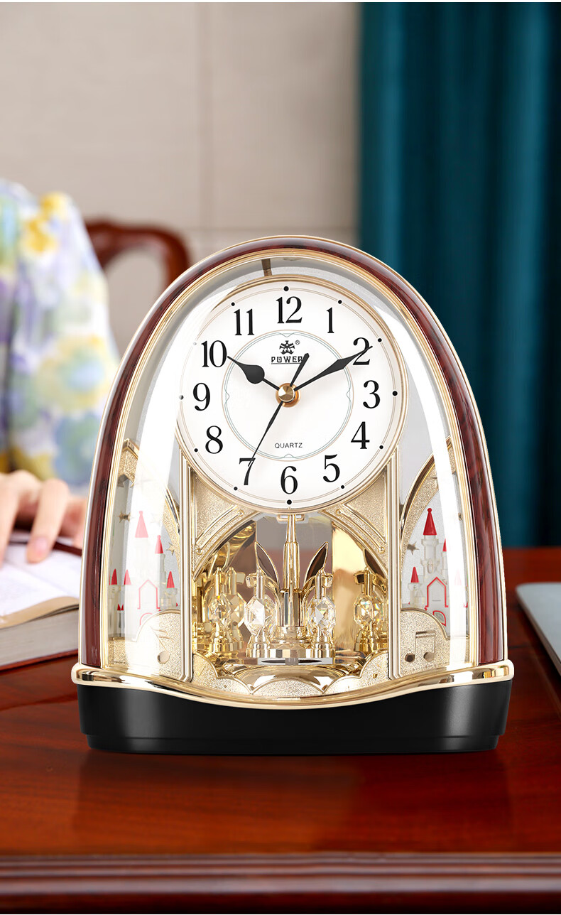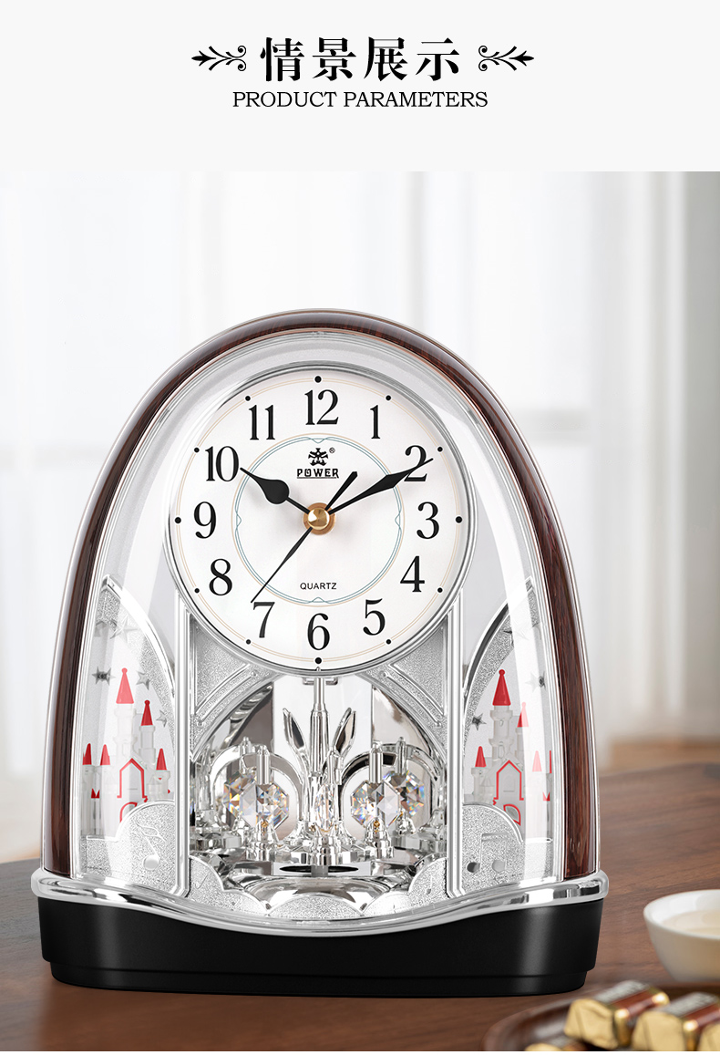 POWER 霸王转摆音乐台钟精致工艺家居客厅摆件座钟钟表PW4213ARKS