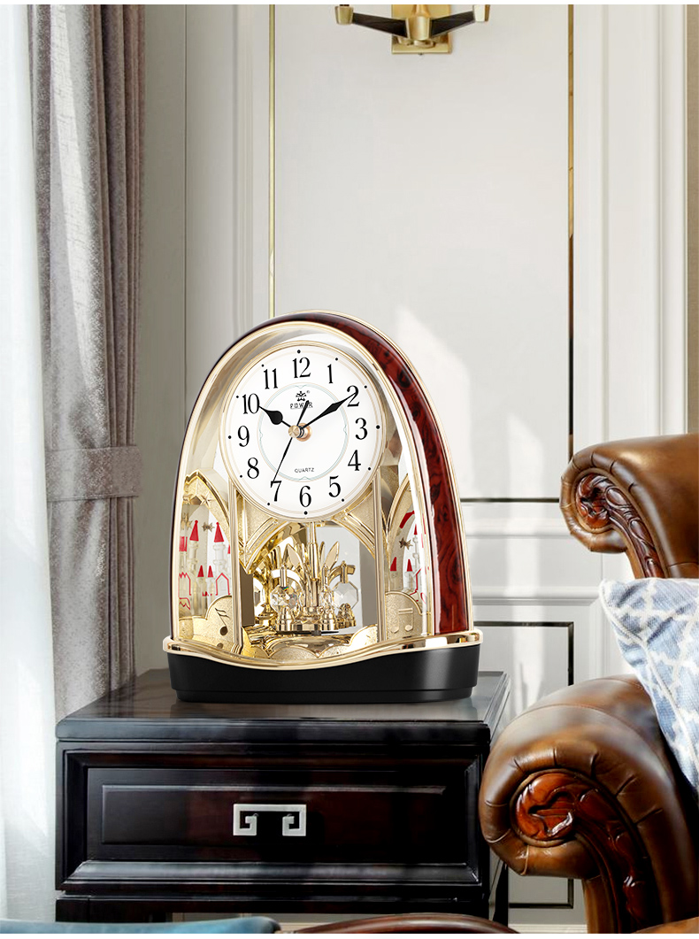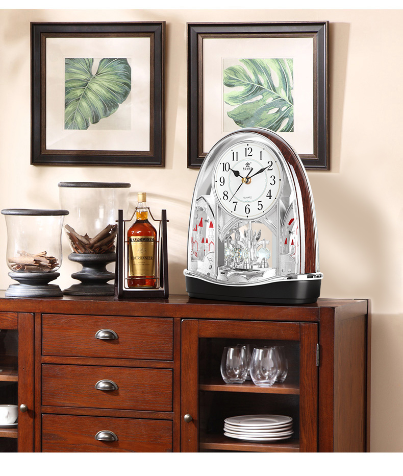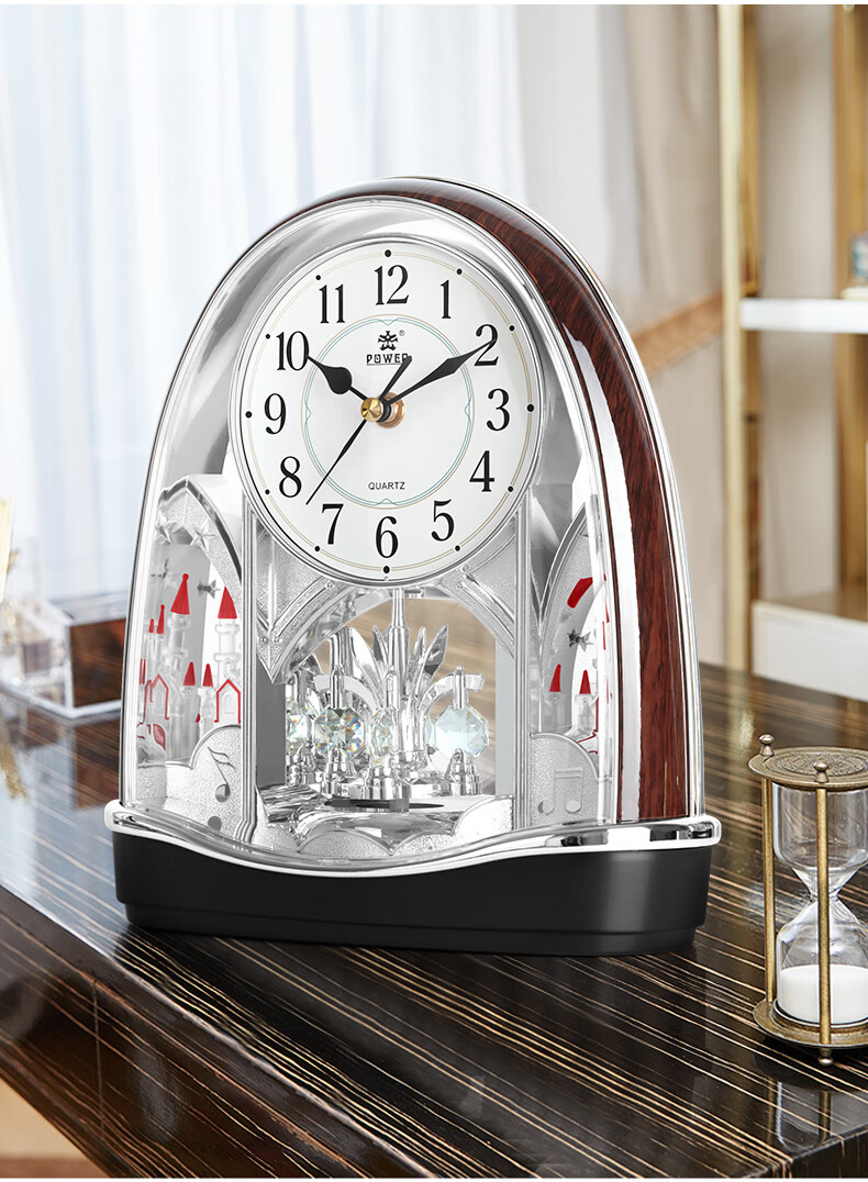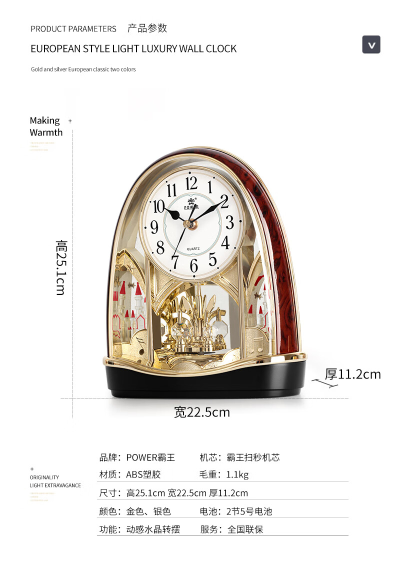 POWER 霸王转摆音乐台钟精致工艺家居客厅摆件座钟钟表PW4213ARKS