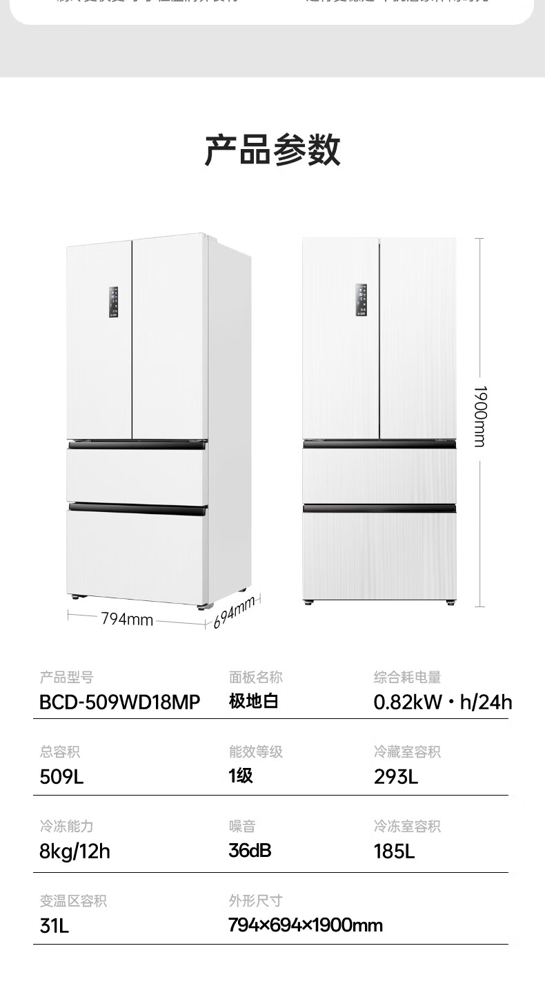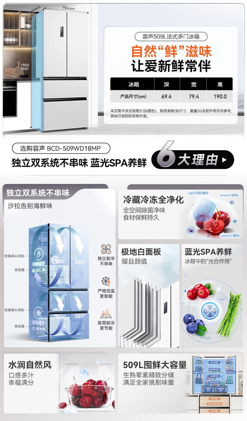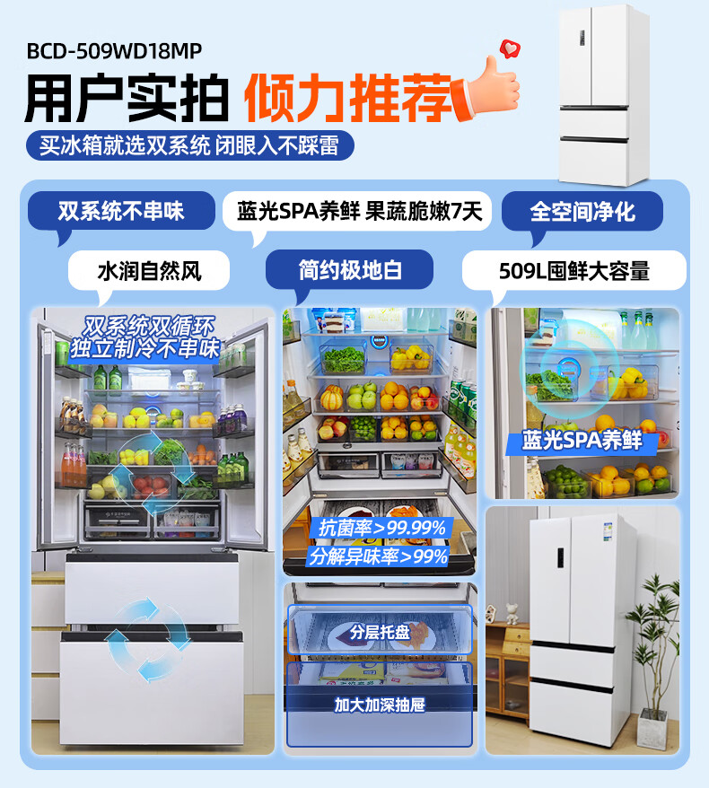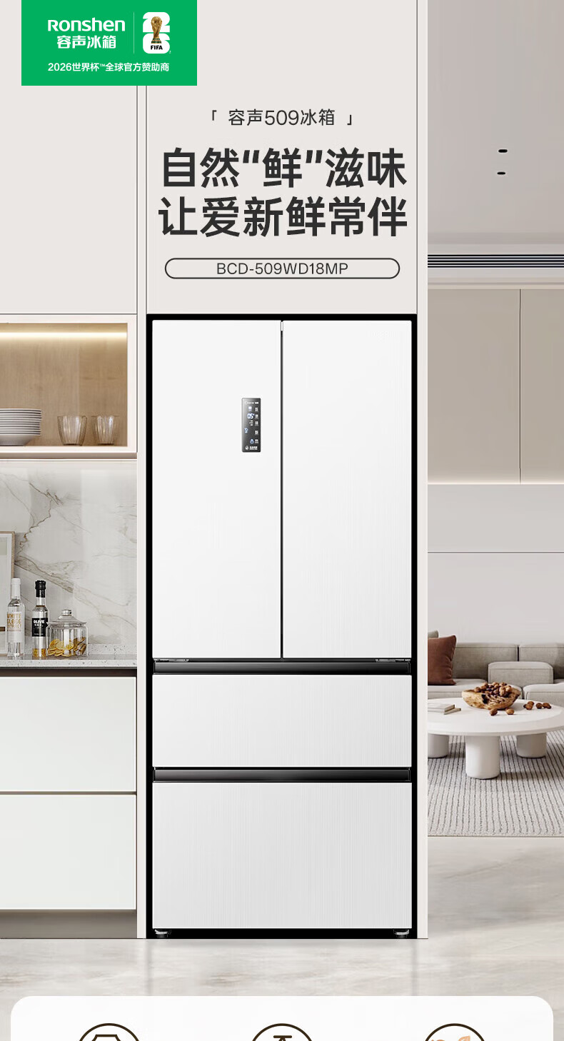 容声509升双系统双循环法式多门四开门电冰箱一级能效风冷无霜大容量BCD-509WD18MP白以旧换新国家补贴