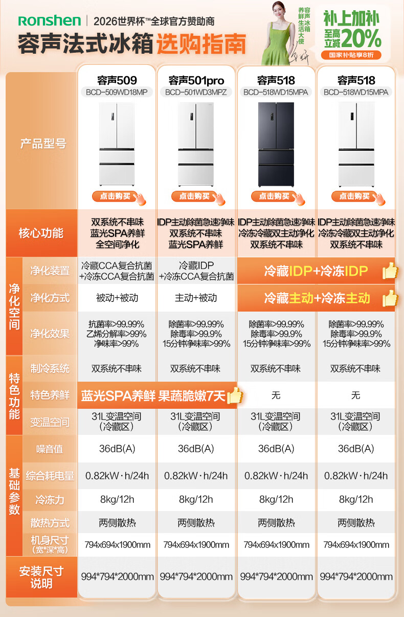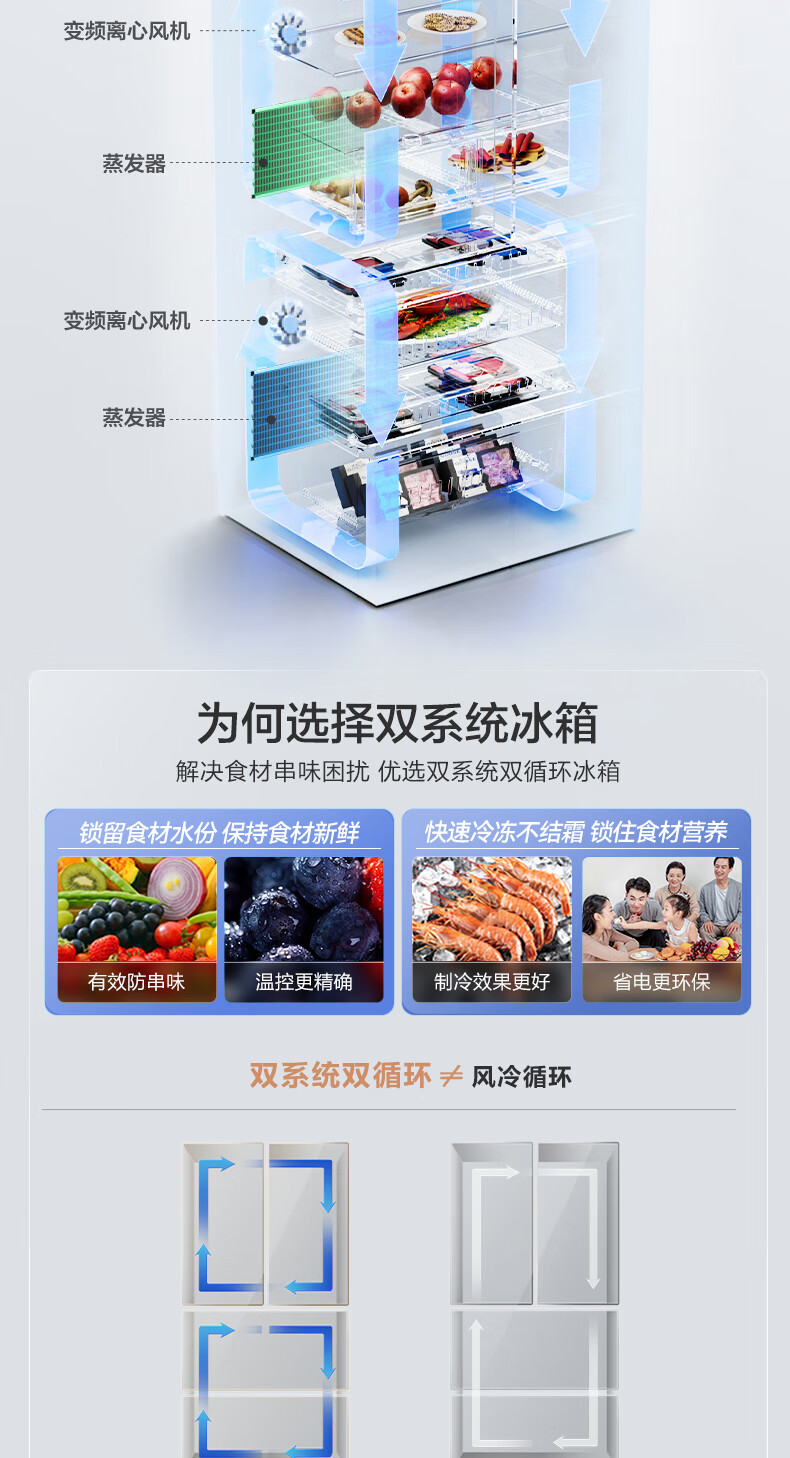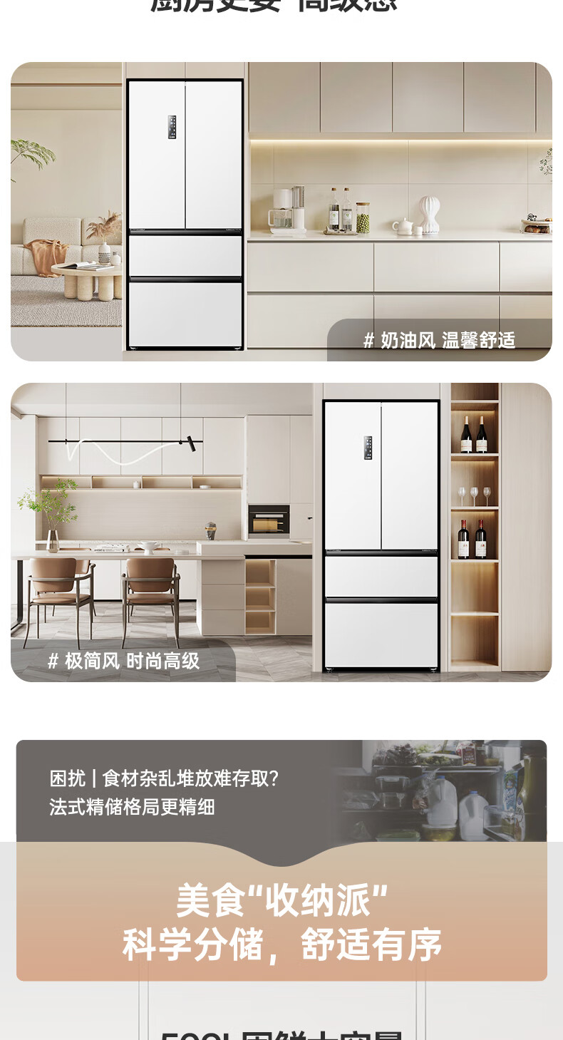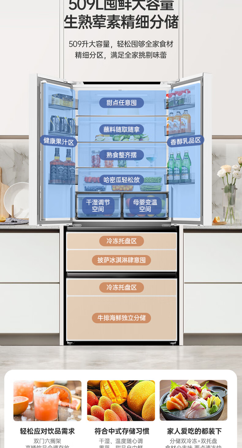 容声509升双系统双循环法式多门四开门电冰箱一级能效风冷无霜大容量BCD-509WD18MP白以旧换新国家补贴