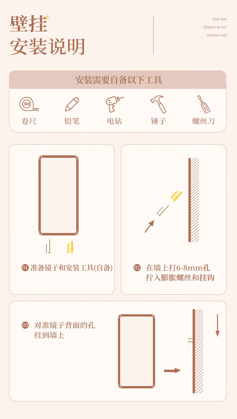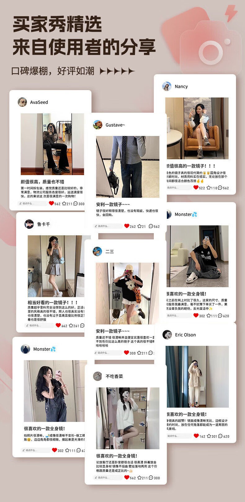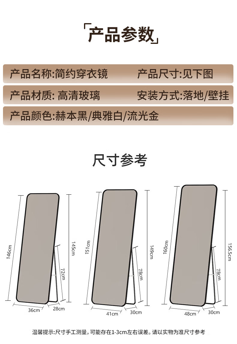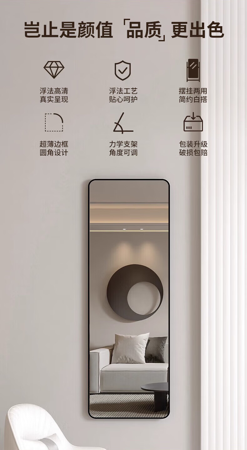 全品屋全身镜穿衣镜落地镜挂门服装店试衣壁挂镜一体简约北欧风146