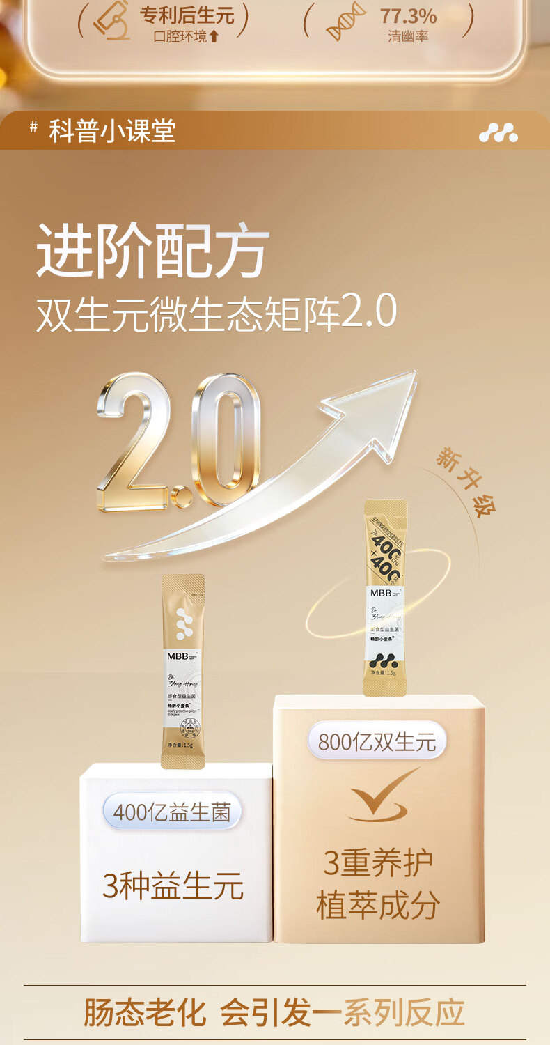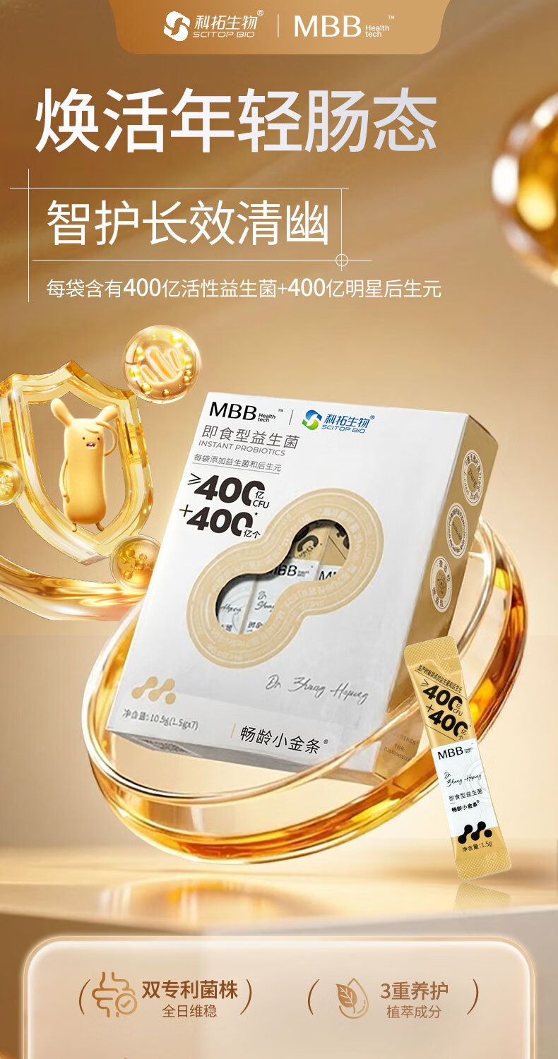 MBB科拓畅龄小金条益生菌成人调维稳款理肠胃肠道菌群益生菌冻干粉 小金条9盒加赠2盒