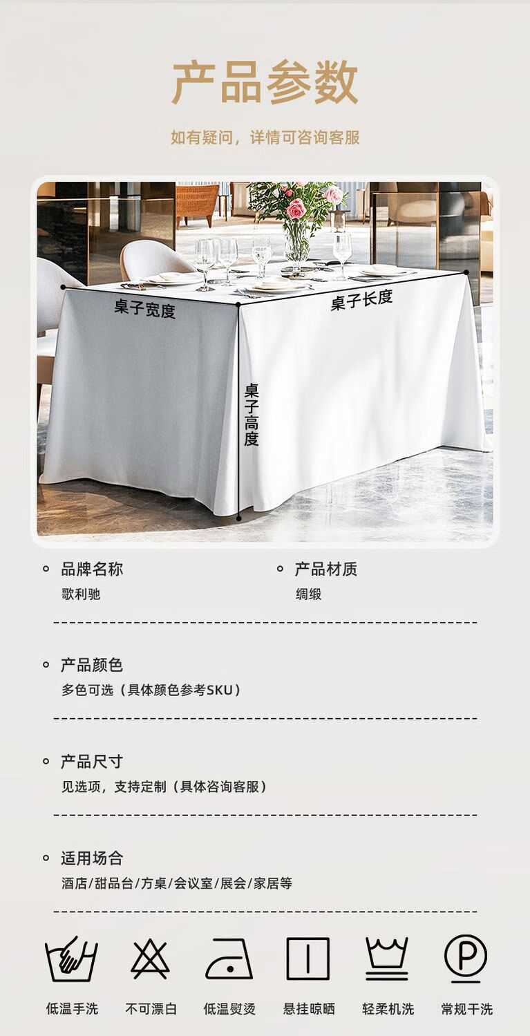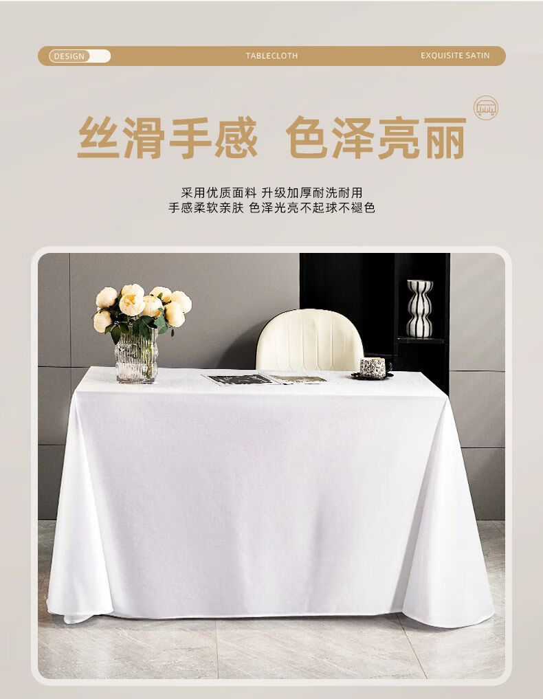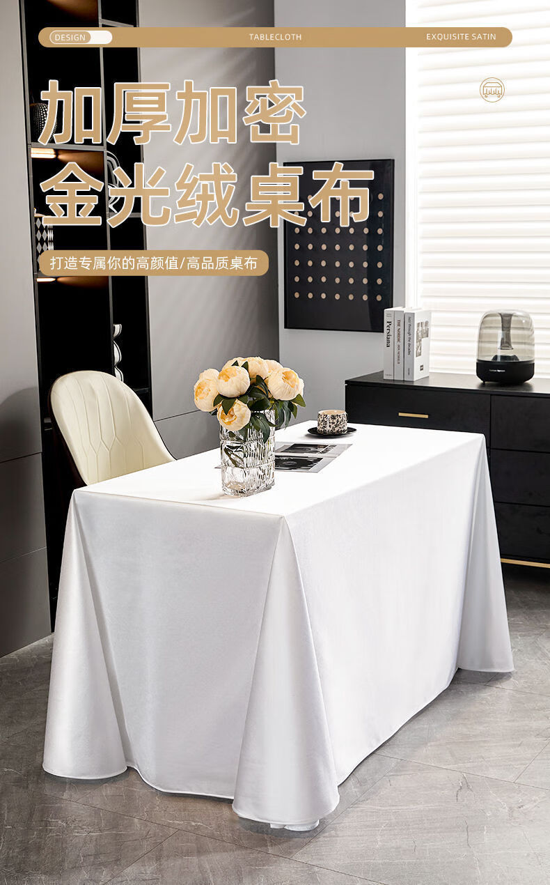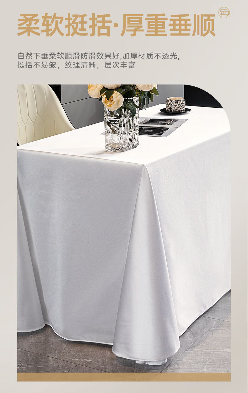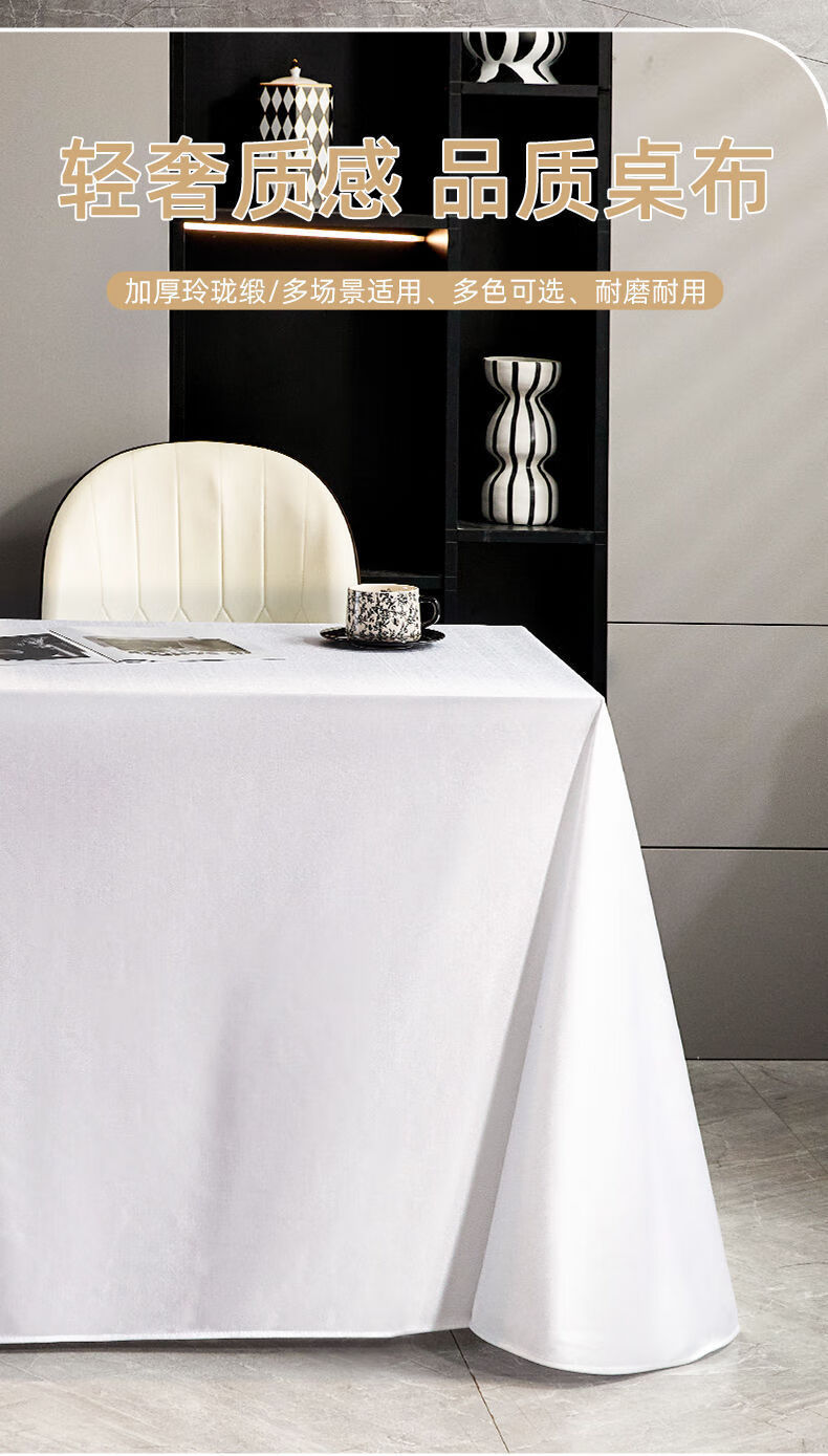 鹿婕锦缎桌布酒店高档会议桌布定制长方形加厚白色轻奢高级感长条桌台 定制尺寸链接客服改价