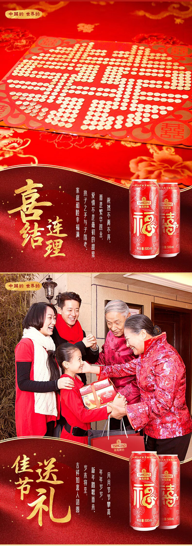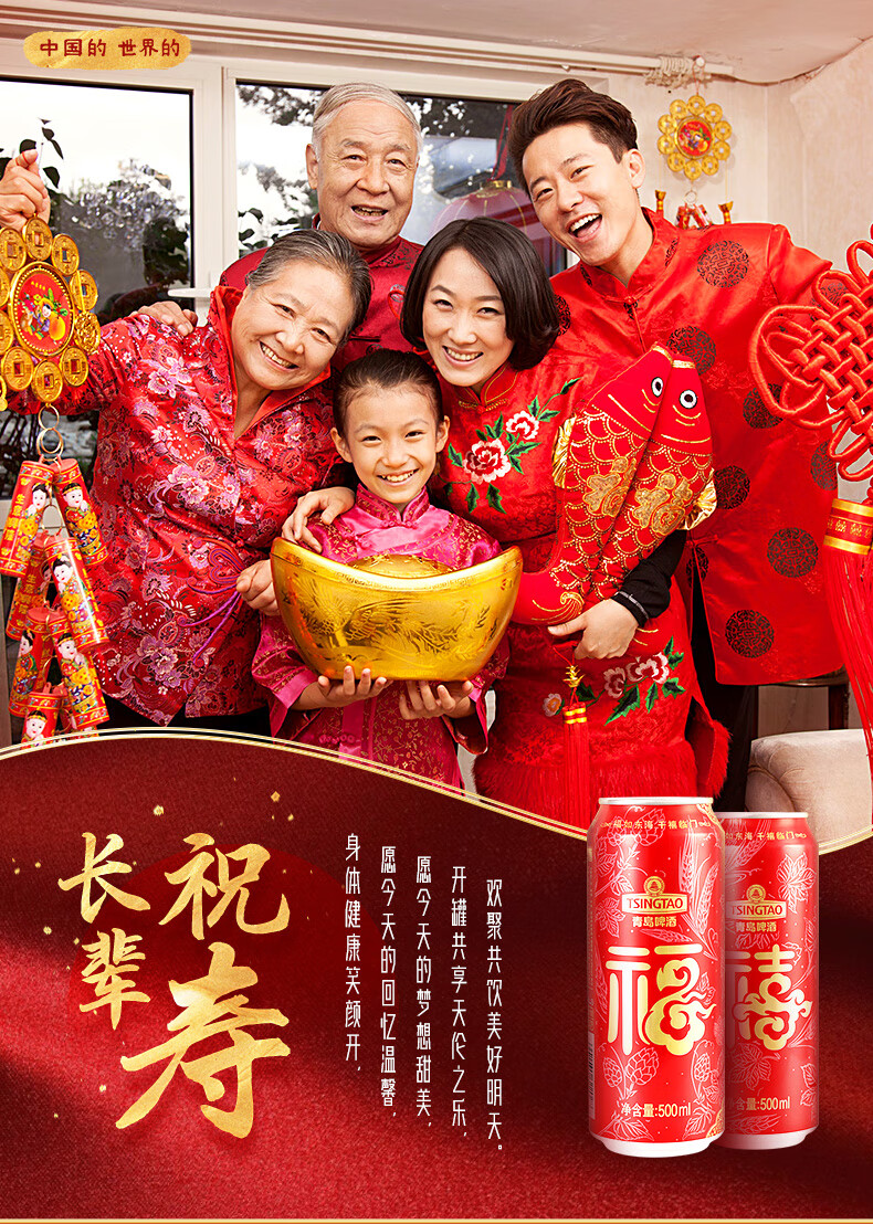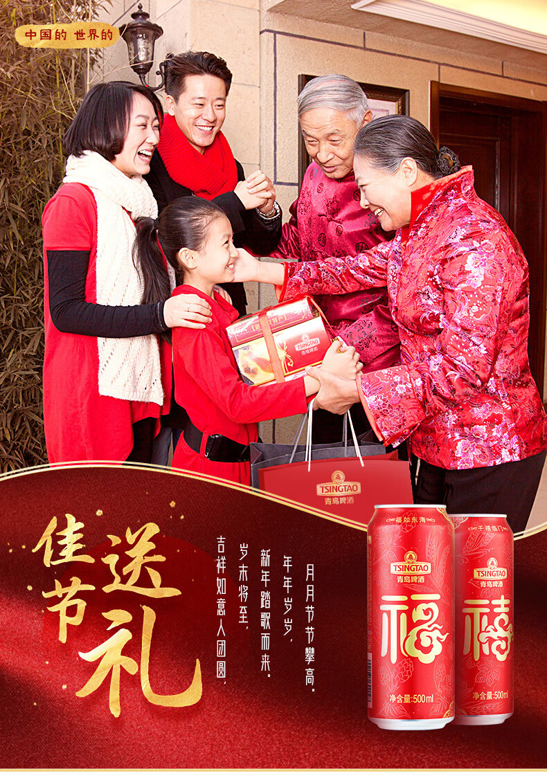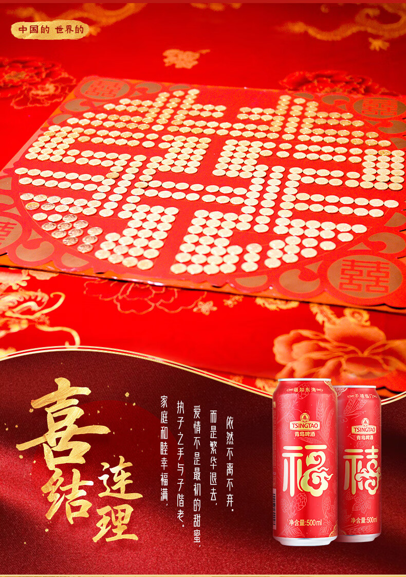 青岛啤酒 福禧双至原麦汁浓度10°P喜庆祝福听整箱装 500mL 12罐