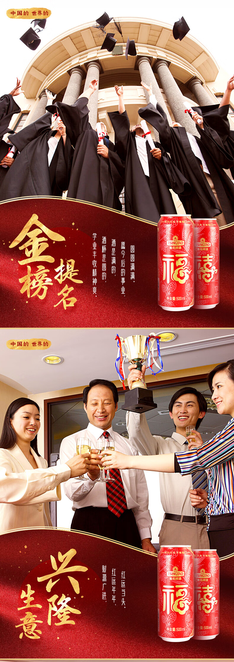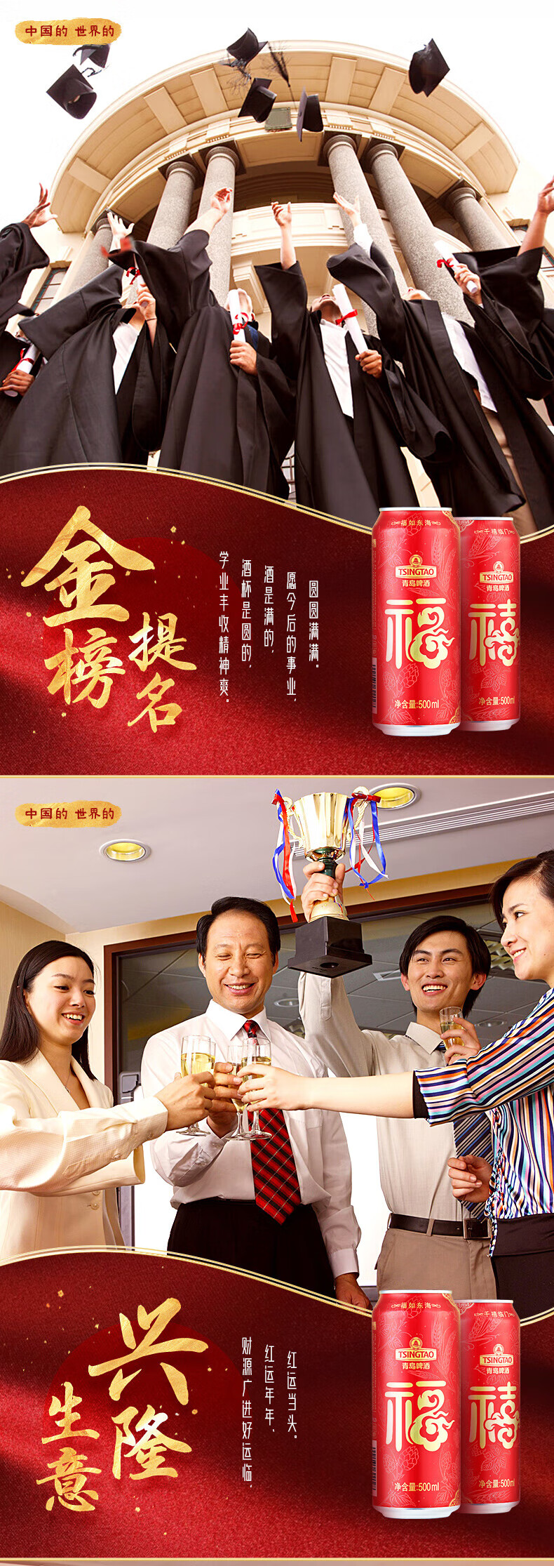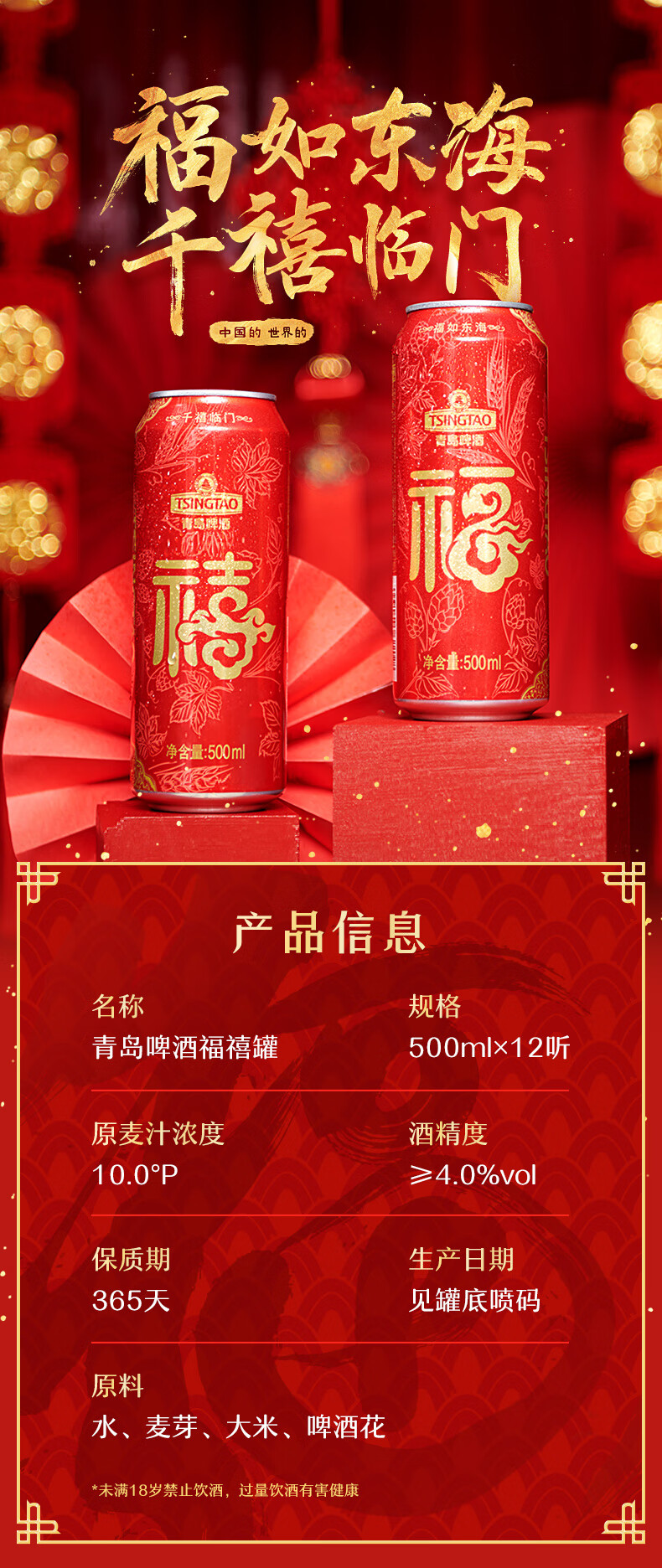 青岛啤酒 福禧双至原麦汁浓度10°P喜庆祝福听整箱装 500mL 12罐