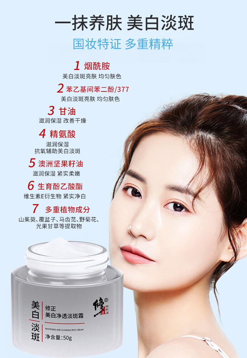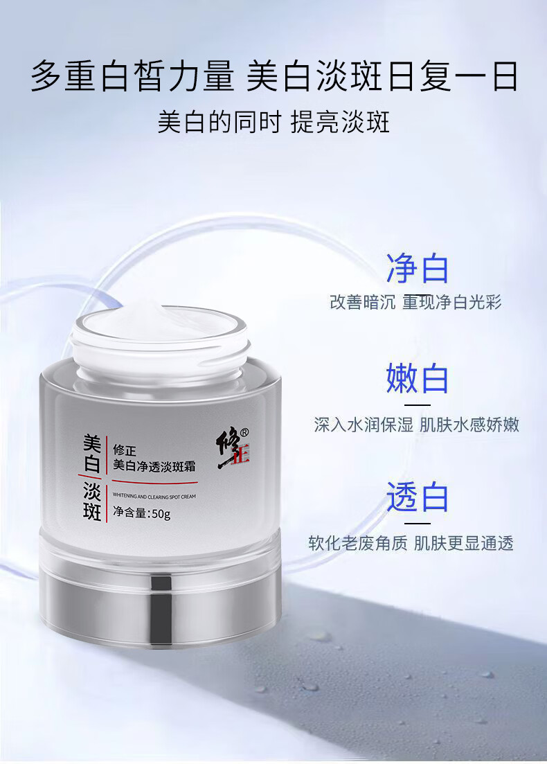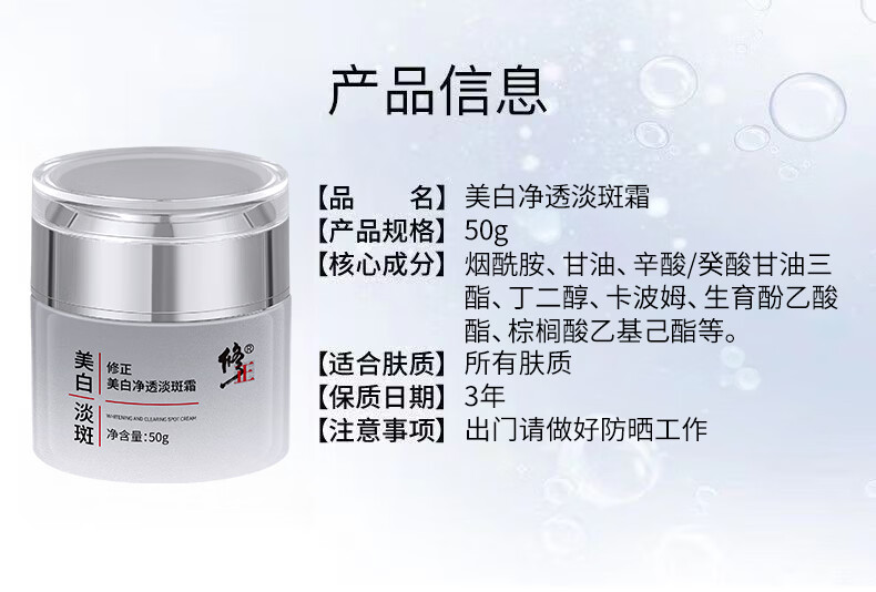 修正保湿美白面霜黄暗沉色斑晒斑皮肤黄气提亮美白净透淡斑霜50克/瓶 1瓶【美白净透淡斑霜】