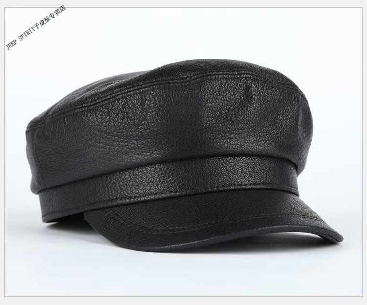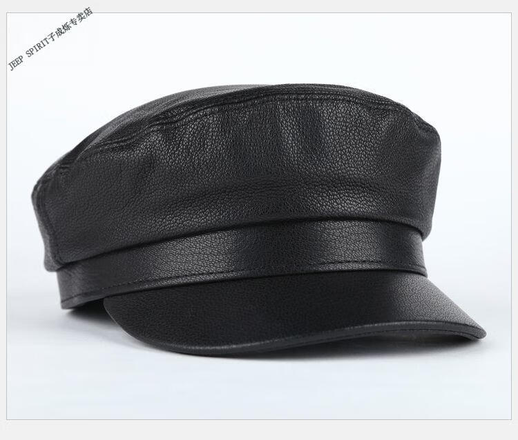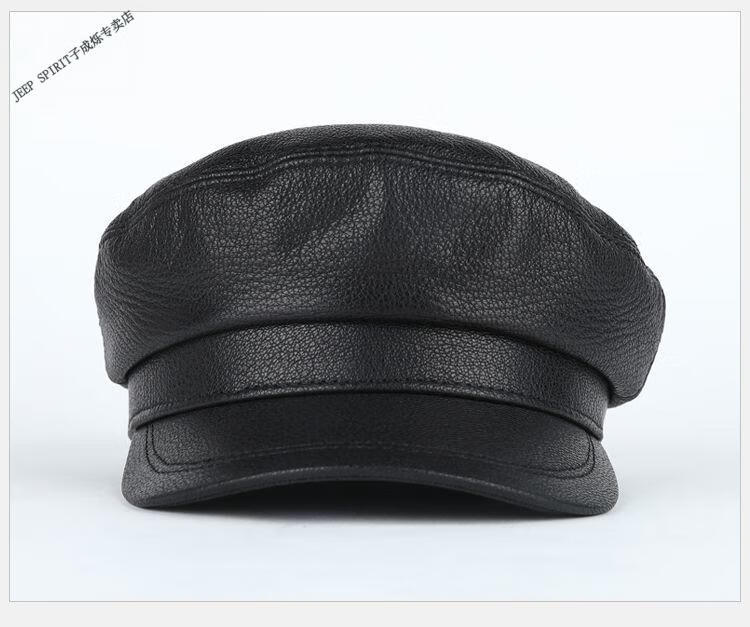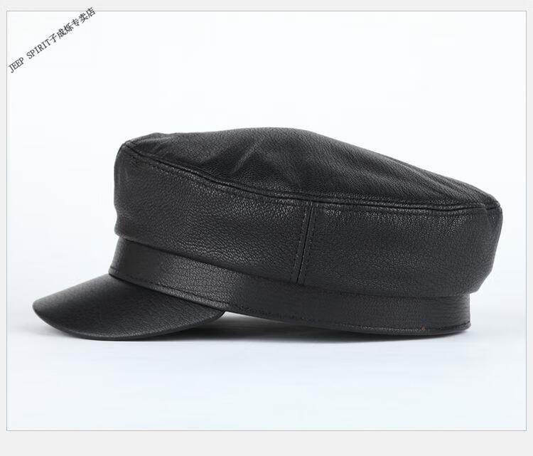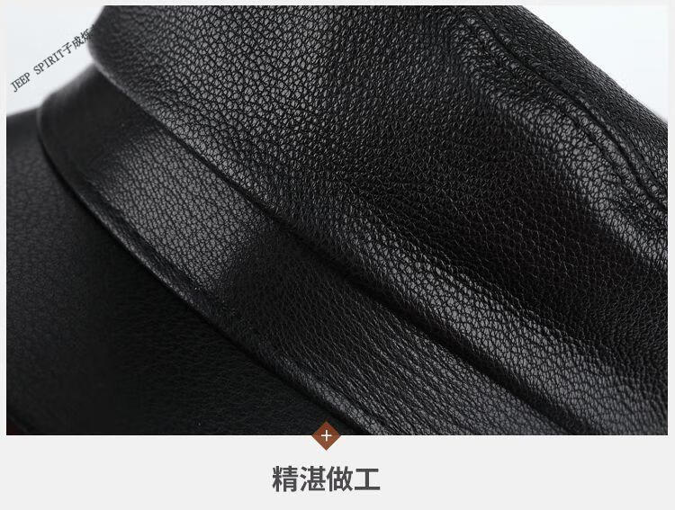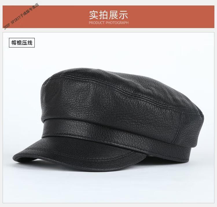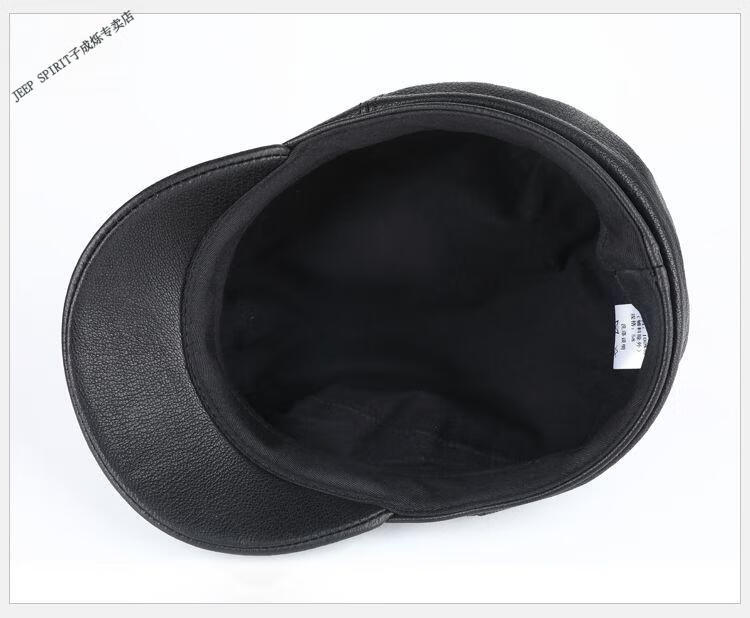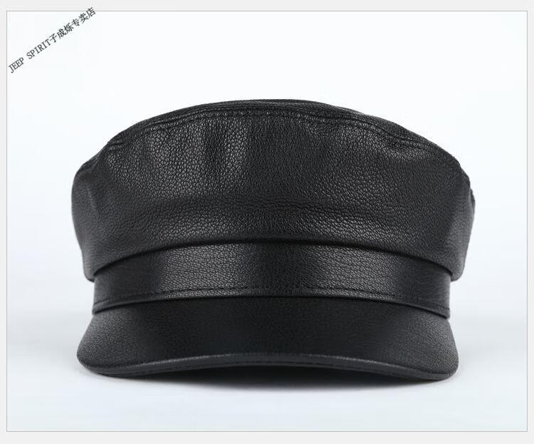 JEEP中老年解放军帽男士真皮帽子秋冬季平顶帽女韩版潮流百搭帽时尚 帽檐无线 M L【适合55-56c】