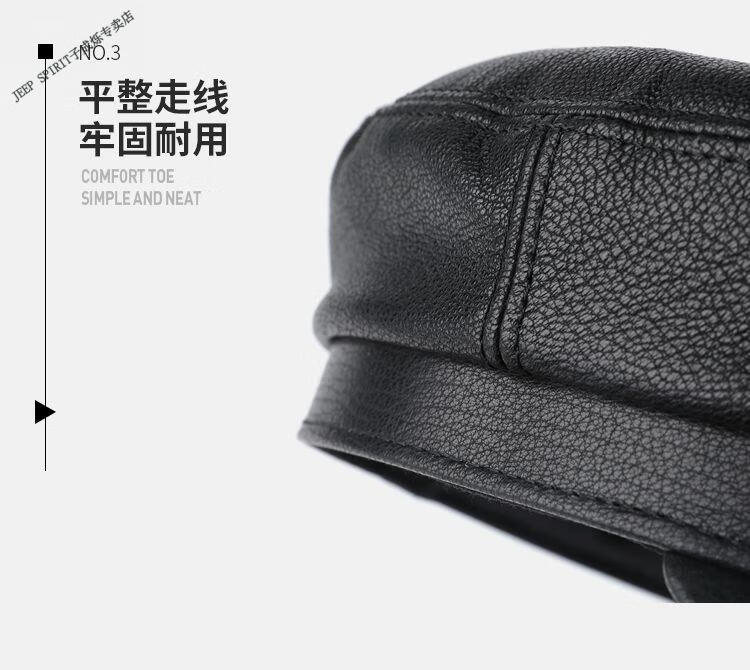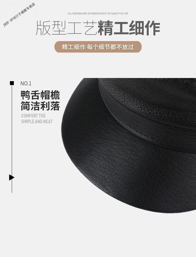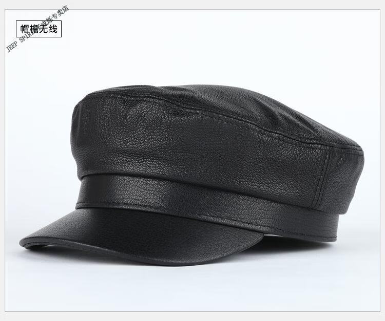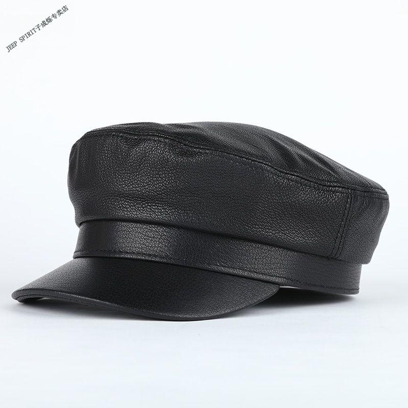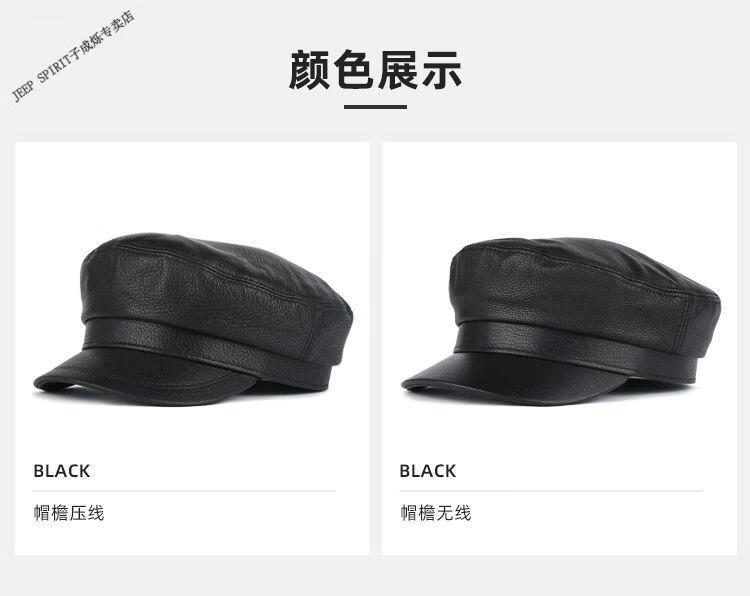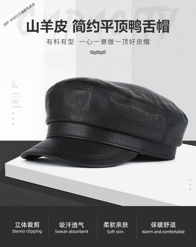 JEEP中老年解放军帽男士真皮帽子秋冬季平顶帽女韩版潮流百搭帽时尚 帽檐无线 M L【适合55-56c】