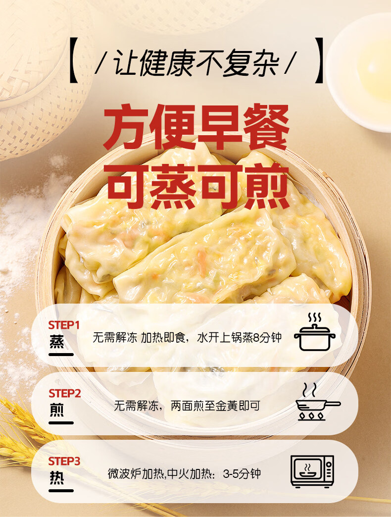 锦溪麦田三鲜蔬菜卷蒸煎包子学生营养早餐健身代餐速食早点半成品 【2袋/共20个】三鲜蔬菜卷360g*2袋