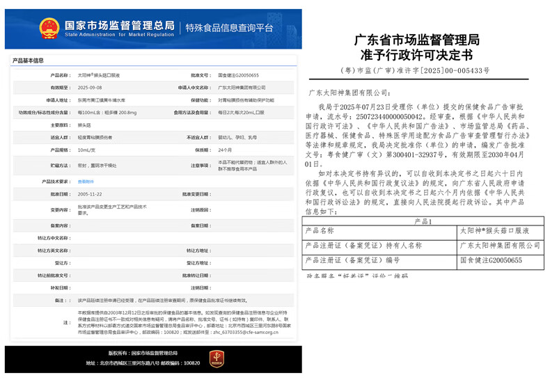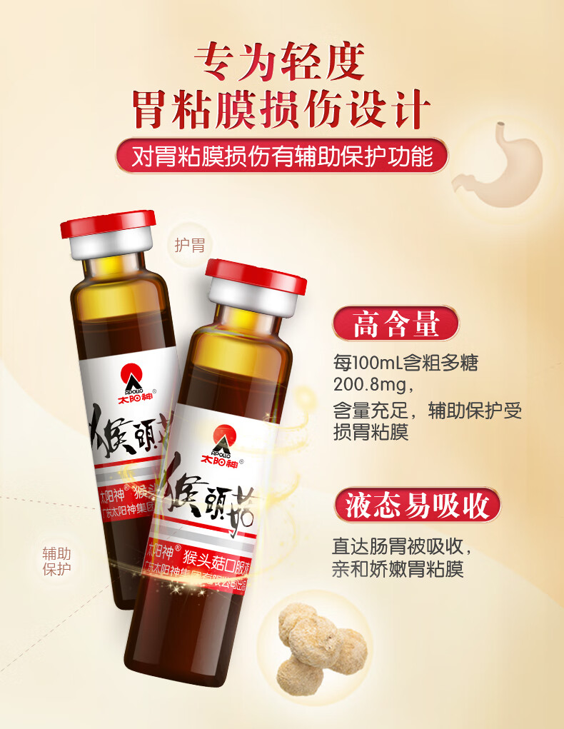太阳神猴头菇口服液辅助保护胃粘膜胃肠不适养护保健调理营养食品 猴头菇口服液 10支*10盒