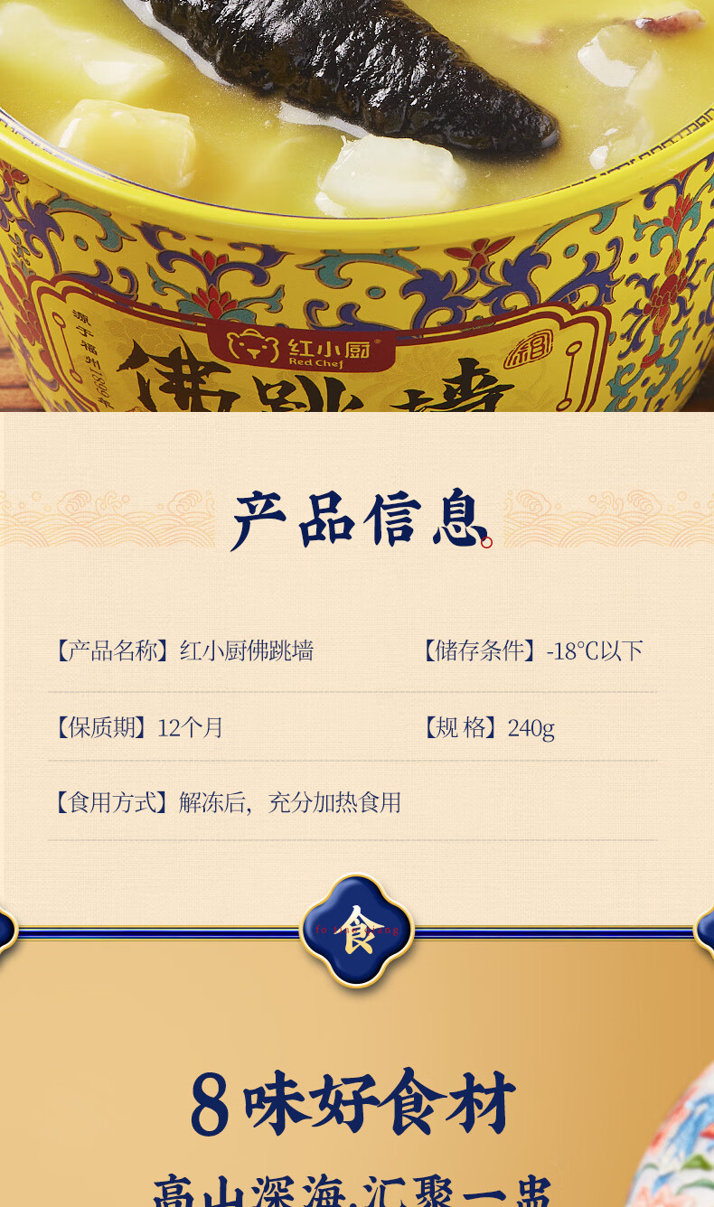 红小厨正宗金汤佛跳墙加热即食240g*8罐海参鲍鱼单人份方便菜