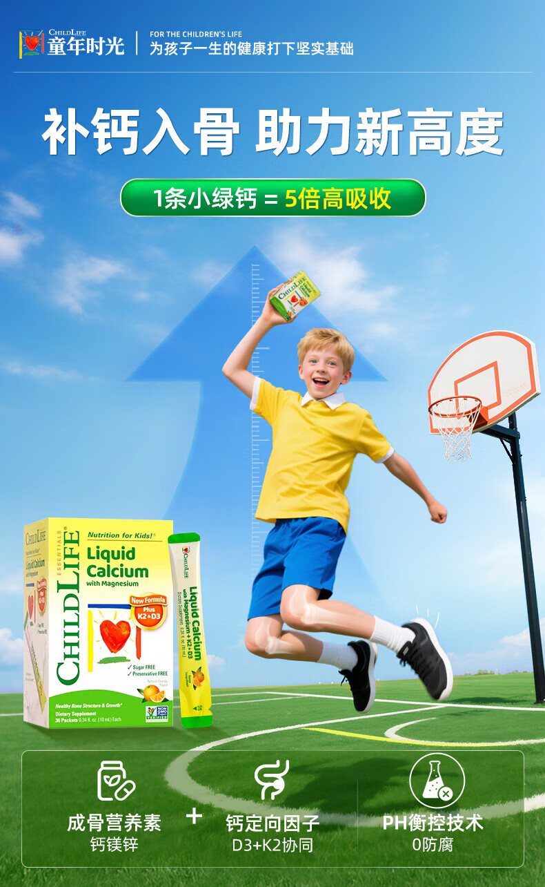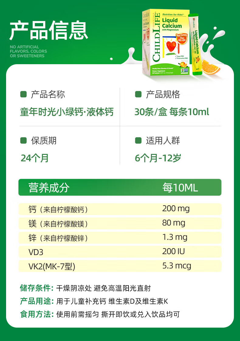 童年时光 钙镁锌液体钙婴幼儿童补钙含K2维生素d3 液体钙镁锌 (便捷装)液体钙镁锌 10ml*30包 *6