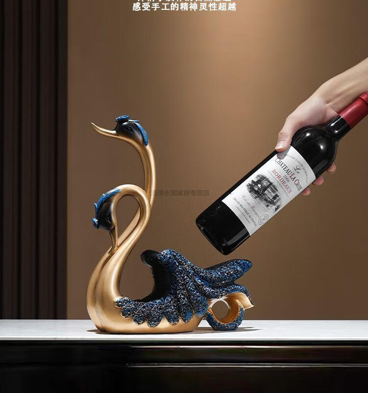 轻奢现代风酒架摆件酒柜电视柜装饰工艺品客厅乔迁结婚新婚礼物 天鹅酒架一只不含酒瓶